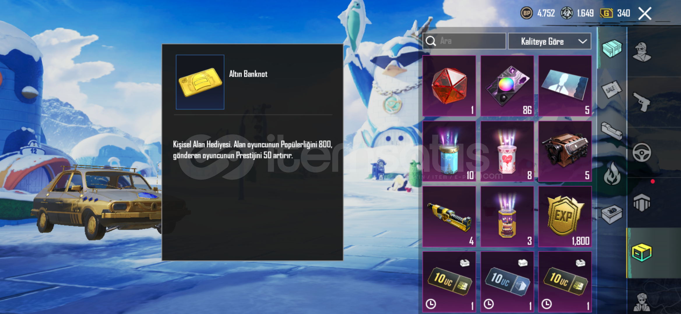 Bağlar tel ve eposta değişim aktifdir.Su m4 5 seviye V.EfektliUmp 3 seviyeM762 3 seviyeScarl 3 seviye Ö.D.Thompson 3 seviye Ö.DMg 2 seviye18 yükseltilebilir4 materyal istediğinizi yükseltebilirsiniz.7 küçük materyal 1 amblem80 spin parasıForm geçmişi temizdirSetler güzeldir