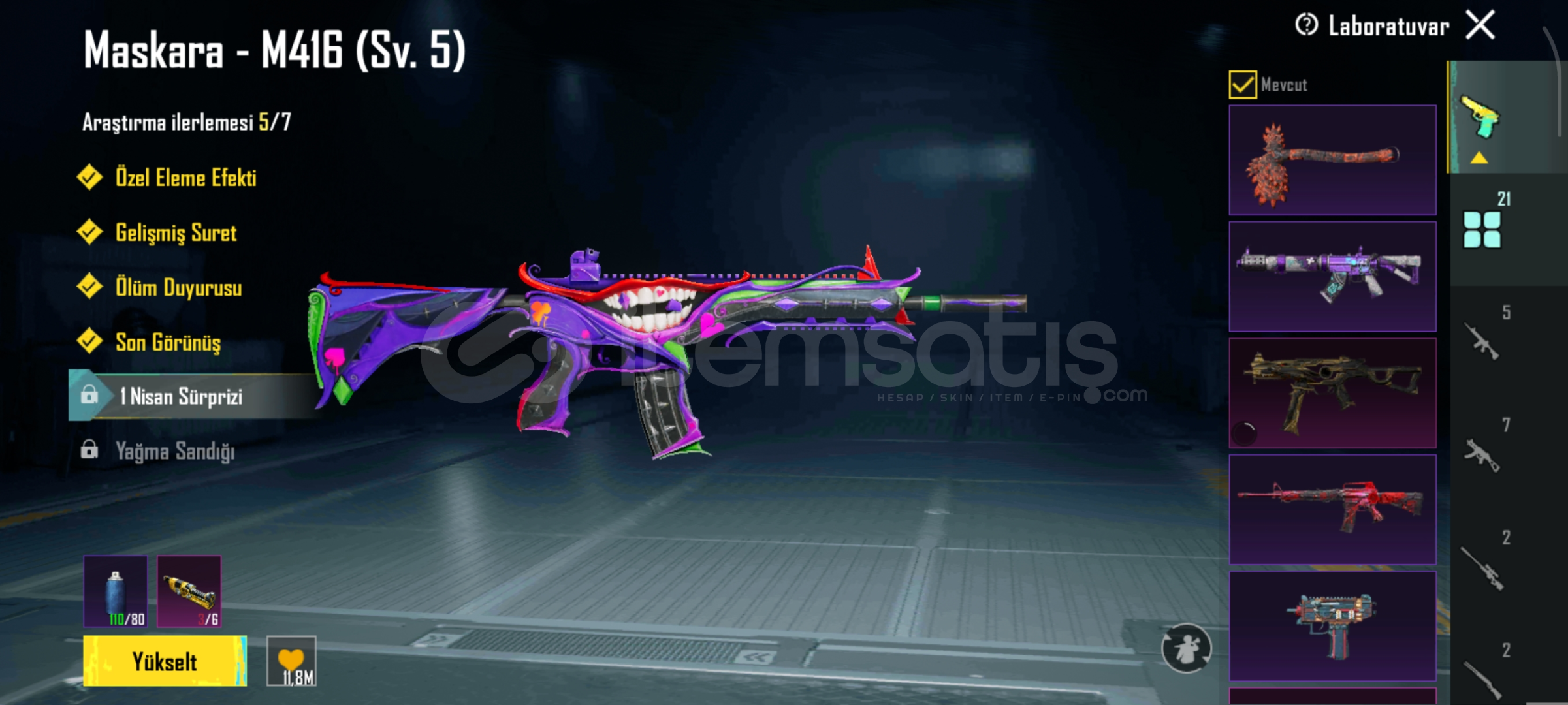 21 adet yükseltilebilir silah