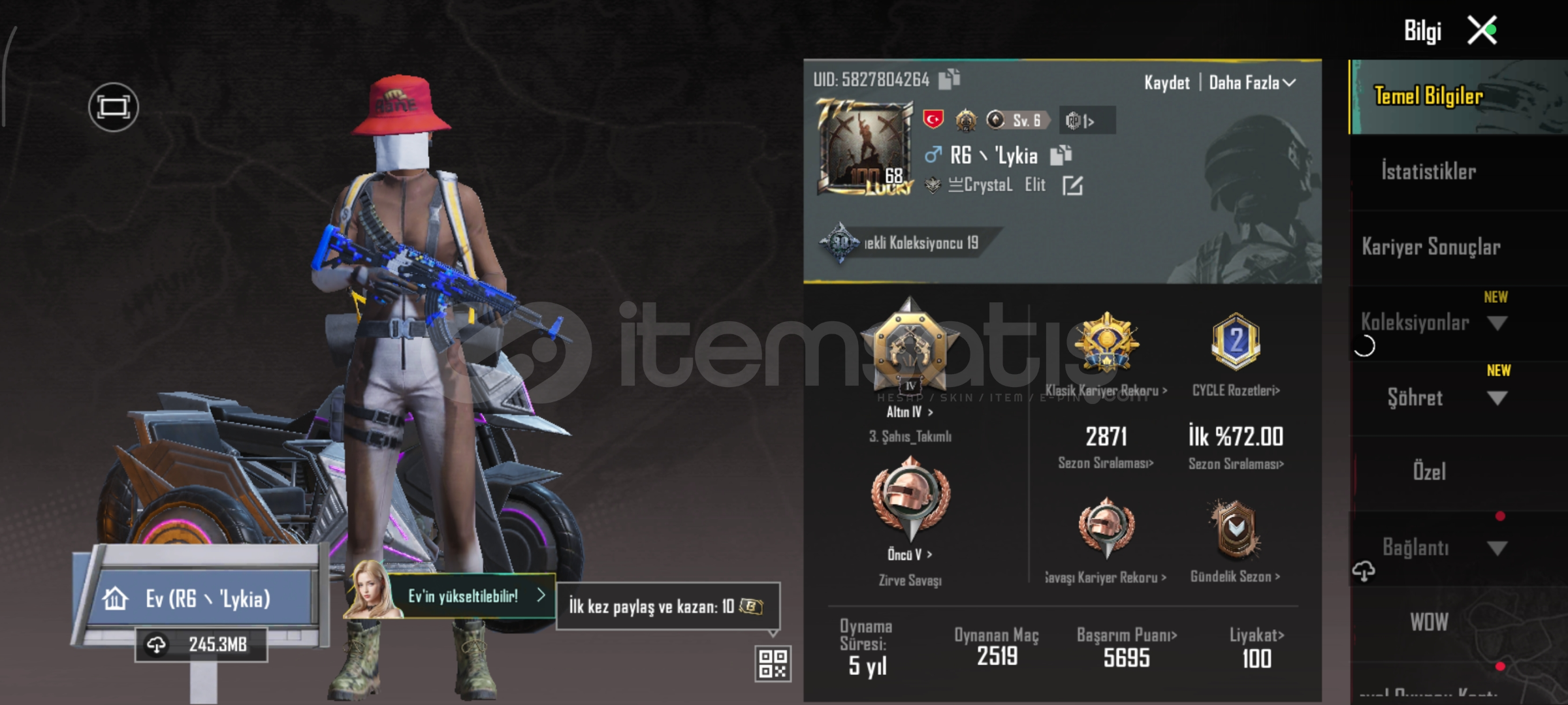 Hesap temizdir 4 yıldır oynadım hesap ihtiyaç dan satyıorum tek fiyattır Hesapta isim kartı vardır