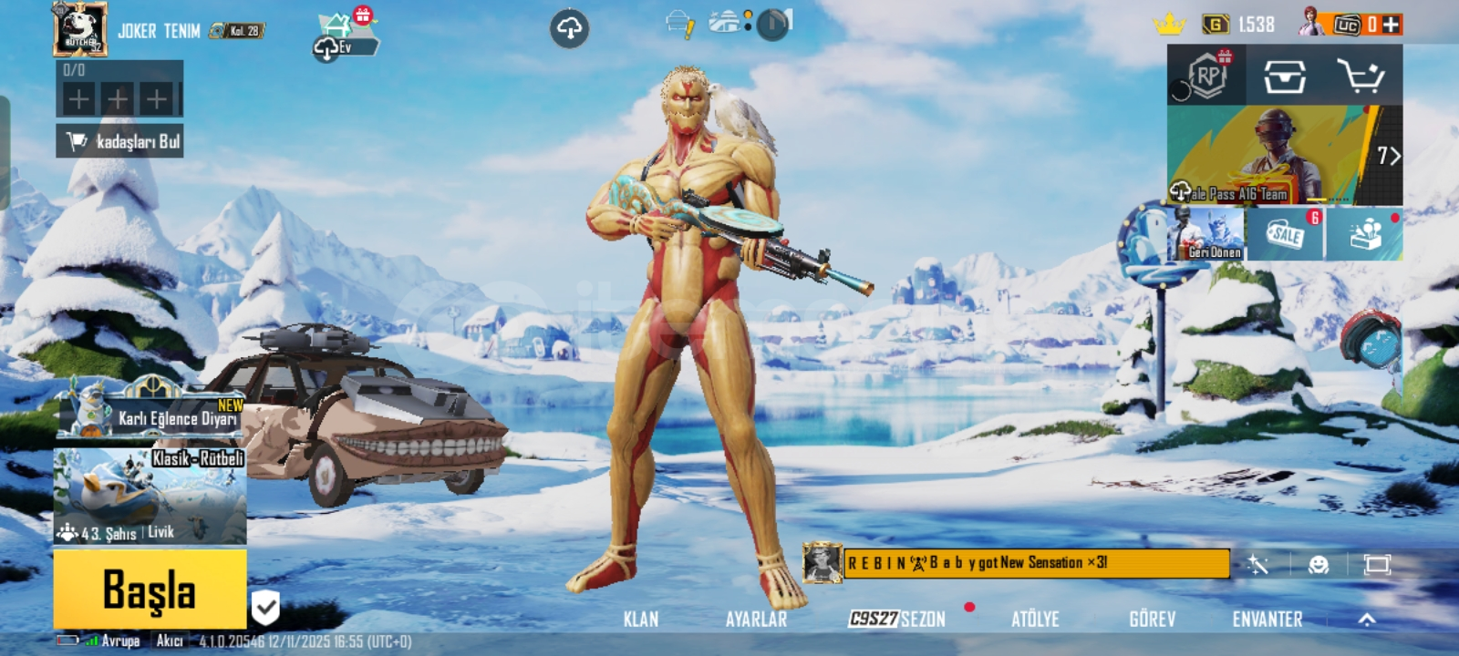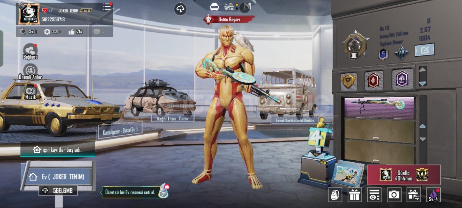 HESABIN İÇİNDE TİTAN KOSTÜMÜ,YOLDAŞ OLARAK KUŞ(KALICI),ARABA VB. ŞEYLER VAR NADİR OLAN BİR ÇOK ŞEY VAR UYGUNA BIRAKIYORUM