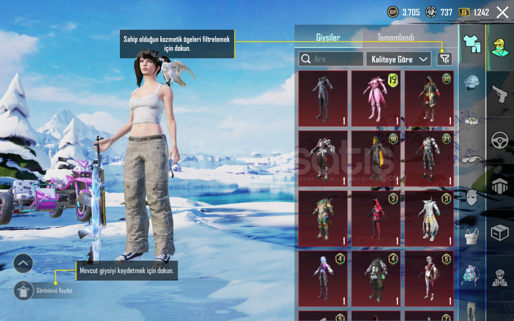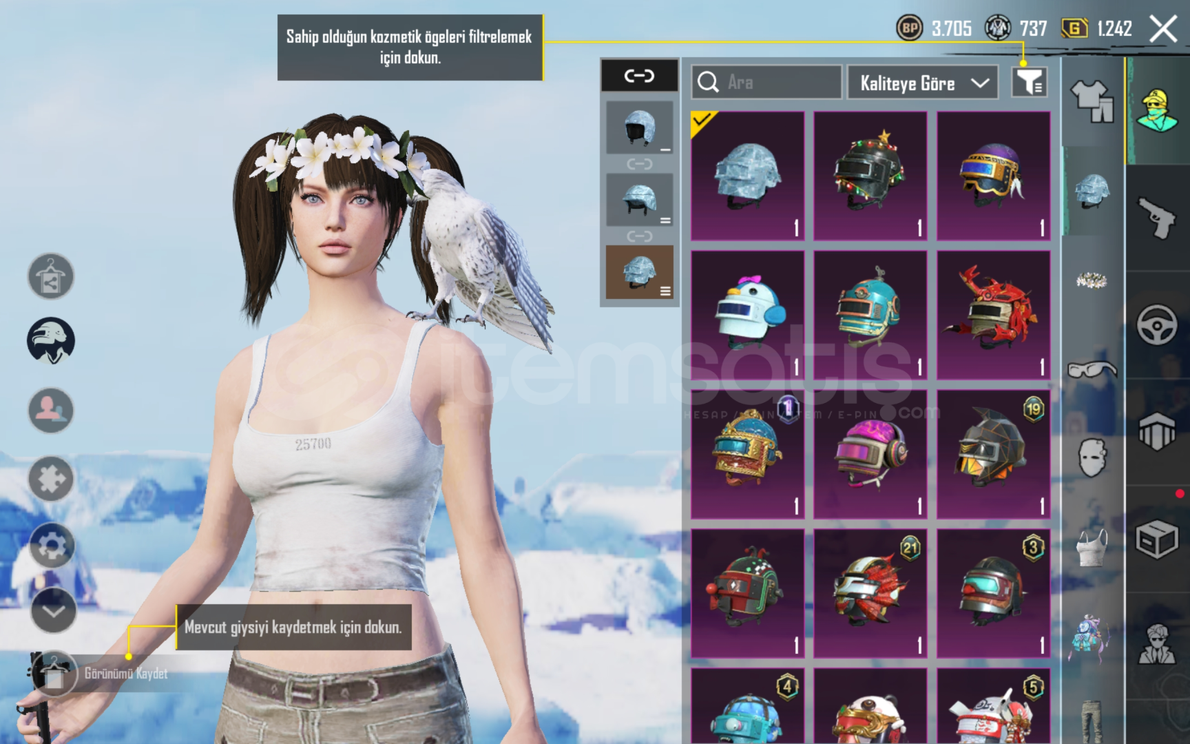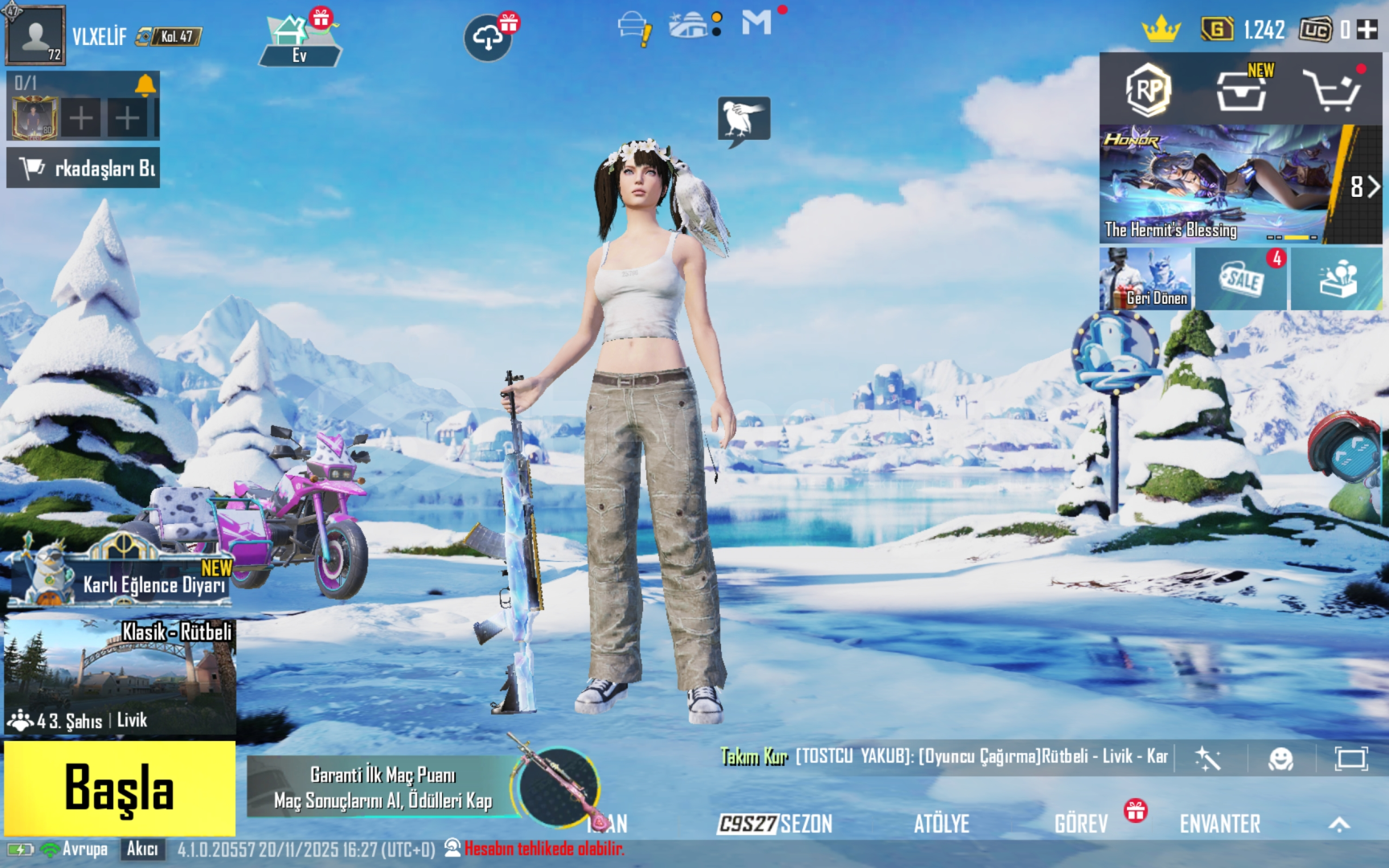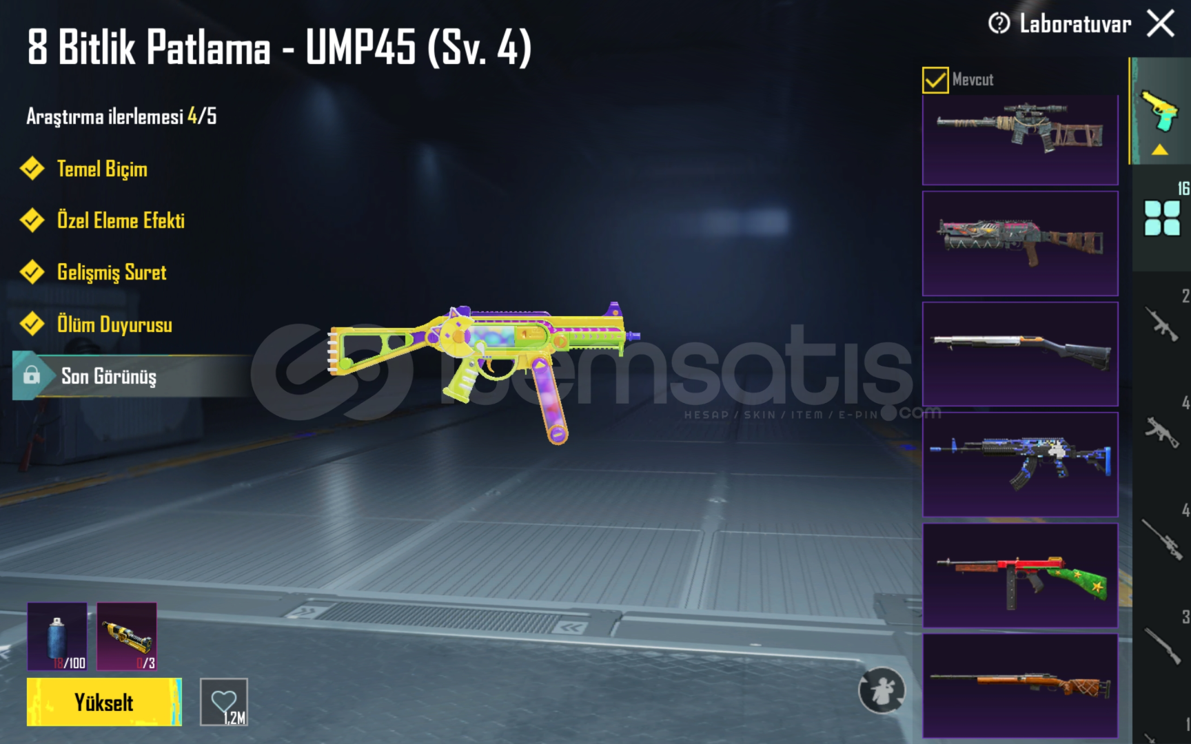 16 geliştirilebilir silah. 34 destansı. Bağlar tertemiz. 5 kez fatih olmuştur. S4 yüz S5 saçardır. Yoldaş ku...