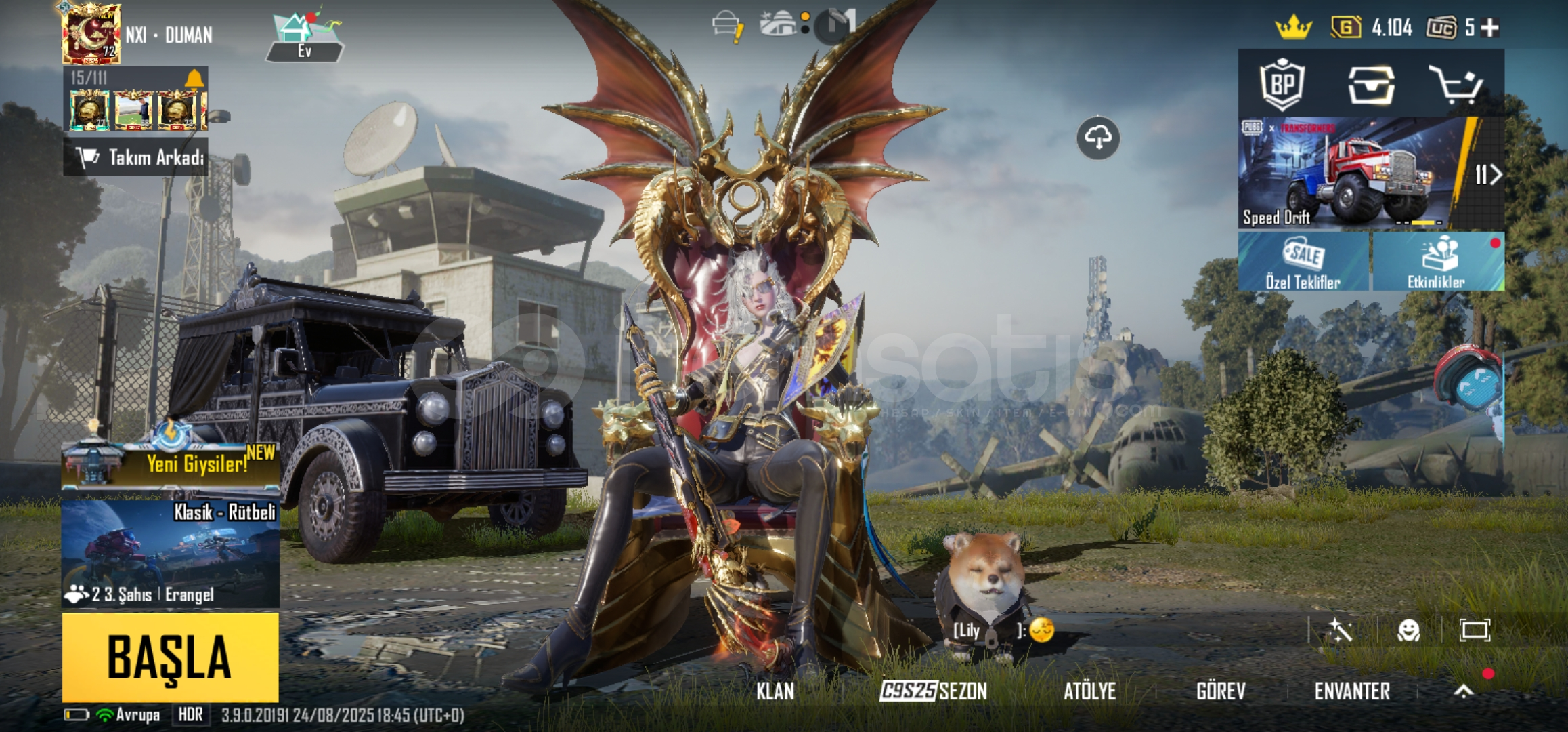 Hesap tamamıyla benimdir. satın alındıktan sonra tüm bağların hepsi üzerinize geçilecek iletişim için dm den yazın.Kd 13.15Hesapta yeni gelen Zırh X 2 lvlAwm 3 lvlVe diğer zırh x teki hersey mevcuttur Ejderhalı Planöre kadar Çerçeveside dahilVe 400 extra zırh x parası mevcuttur5 destansı kristal187 uğurlu paraMethiyeler250 kusur boyaDestansı gösterişEşsiz...