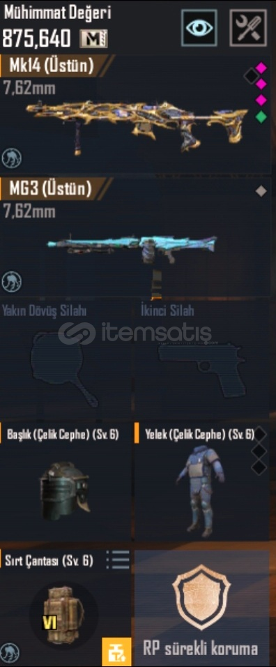 -------Eşyalar------[1-1 Adet Çelik Cephe Kask][2-2 Çelik Cephe yelek ][3-3 Çanta ][4-4 Mk14 ][5-5 Mg3]------Özellikleri------[1-1] = Kalınlaştırılmış Malzeme [MAX] / Dayanıklı malzeme [MAX][2-2] = Patlamadan Etkilenmeyen malzeme [SV2] / Dayanıklı Malzeme [MAX] / Ateşe Dayanıklı malzeme [SV3][3-3] = Elastik bölme [SV2] Yağma dedektörü [SV3] +Bonus özellik[4-4]= Hassas mermi [M...