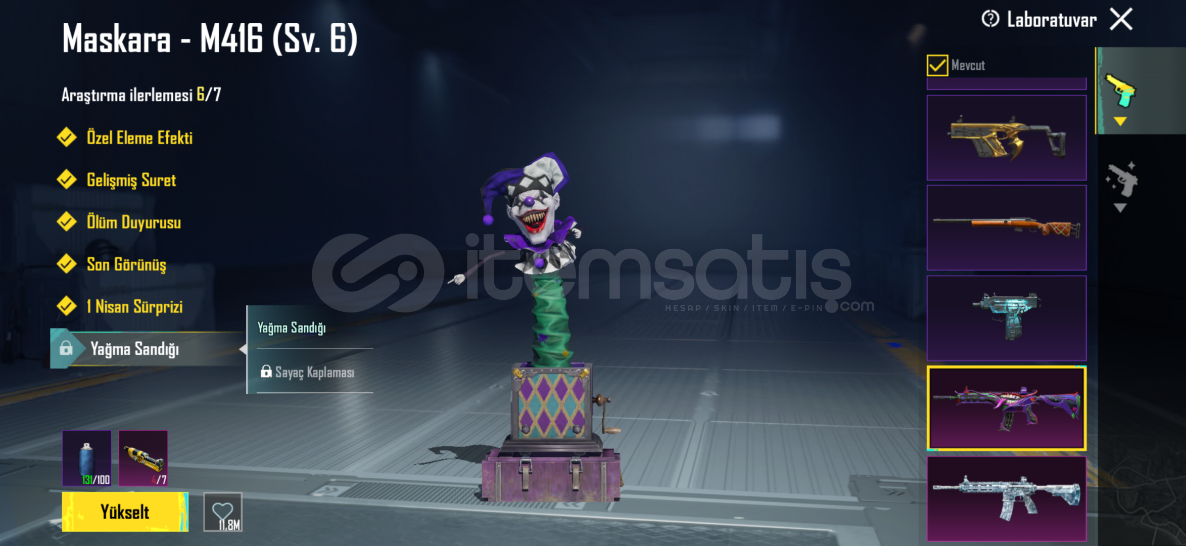 3 tane m4. 6 seviye37 yükseltilebilir6adet nihai4 adet x suit biri 3 yıldız diğer 3 ü 2 yıldızBol özel emojili setli bol nadirlibol ölüm mesajlı boğu silah 4 levelhesabın içinde 800 uc vardır 4 adet materyal vardırABARTILMIYCAK ŞEKİLDE PAZARLIK OLUR