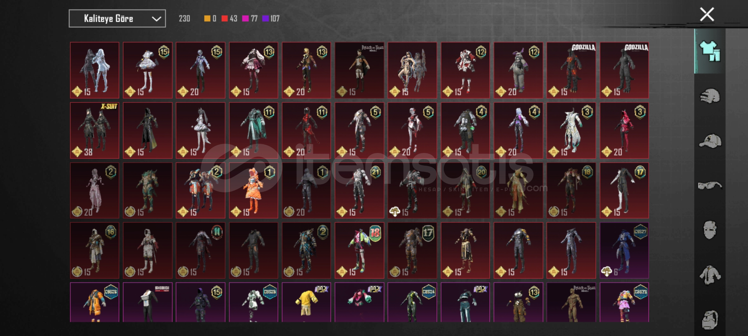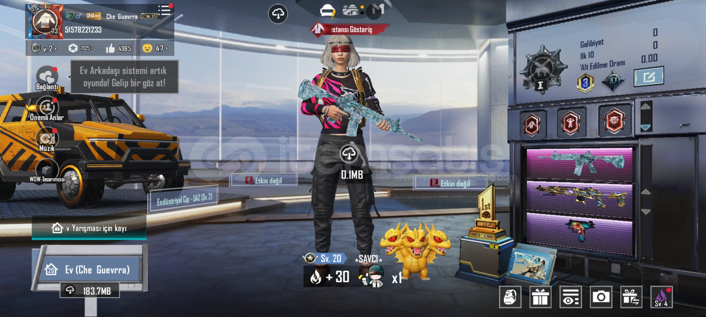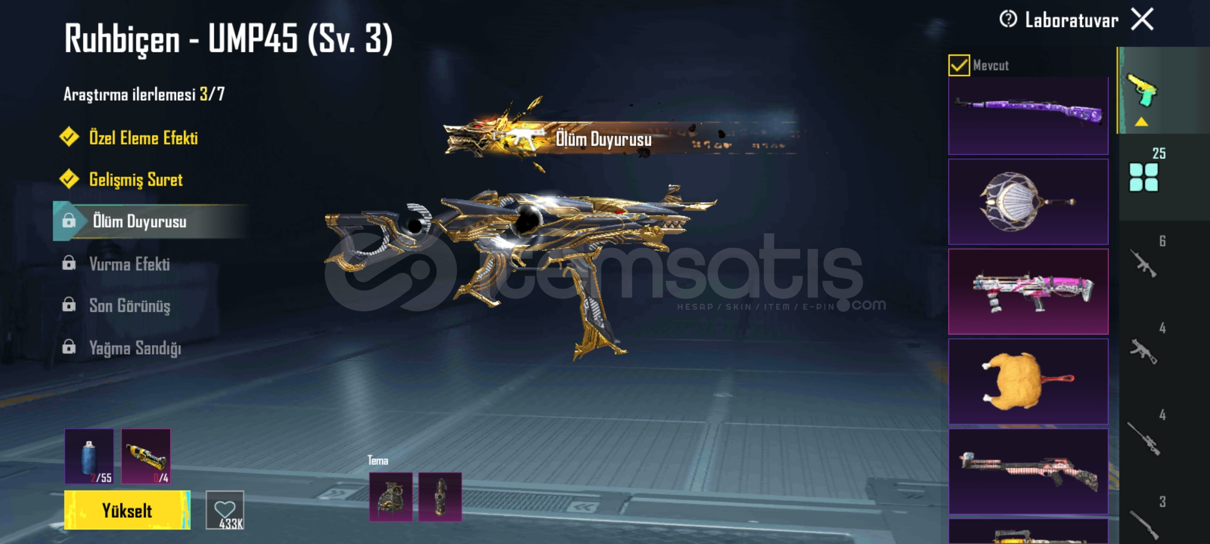 Anukhra ZırhX 3 yıldızlı: Svy 2Buz Diyarı M416: Svy 6Vahşet Uzi: Svy 4Küçük Midilli M762: Svy 3Altın Şifre Akrep: svy 1Yaldızlı Galaksi Mk14: Svy 4Yükselen Ejderha Mg3 Svy: 1Ejder Katili Pala: Svy 1Denizlerin Evrimi Ump45: Svy 2Katil Balkabağı Groza: Svy 2Ruhbiçen Ump45: Svy 3...