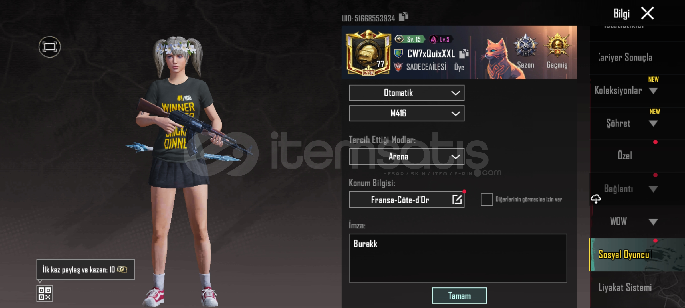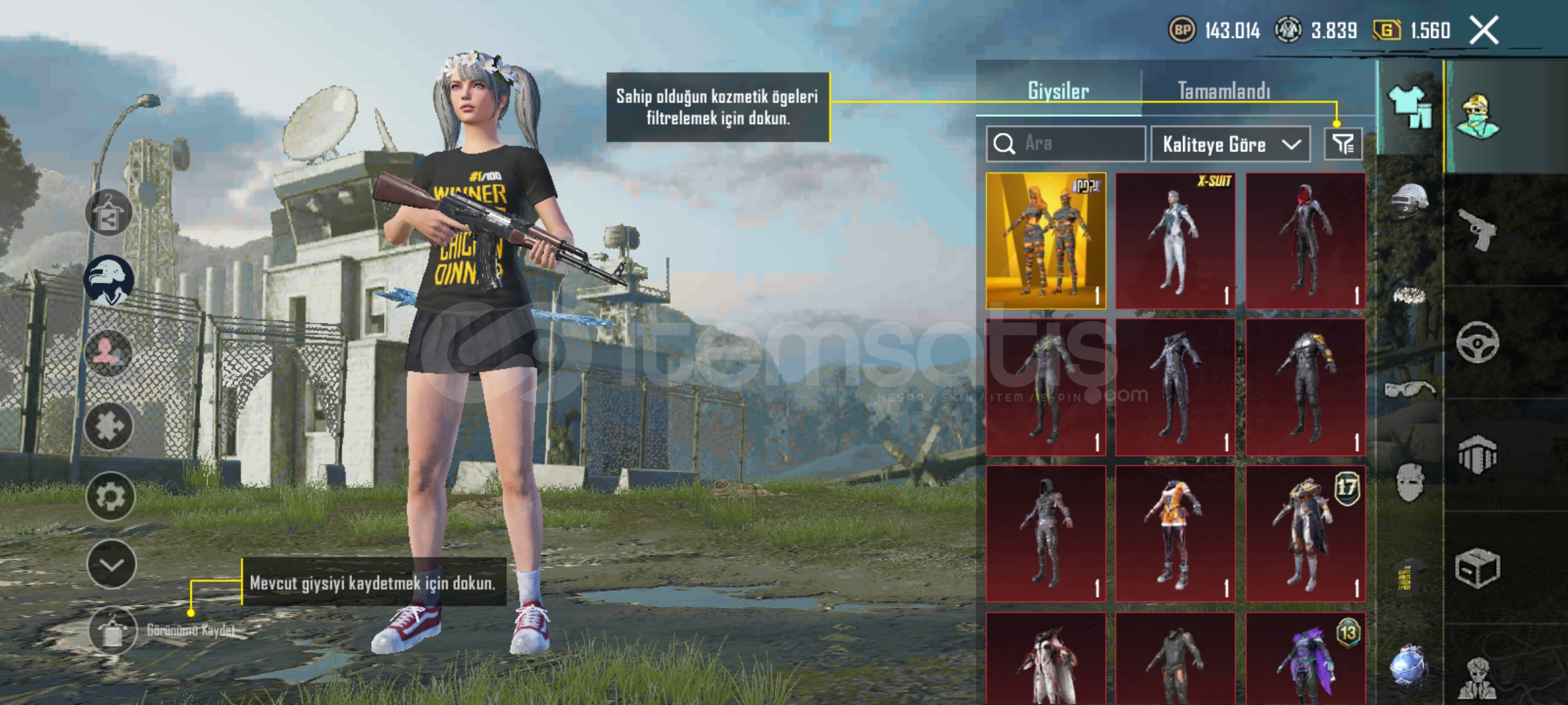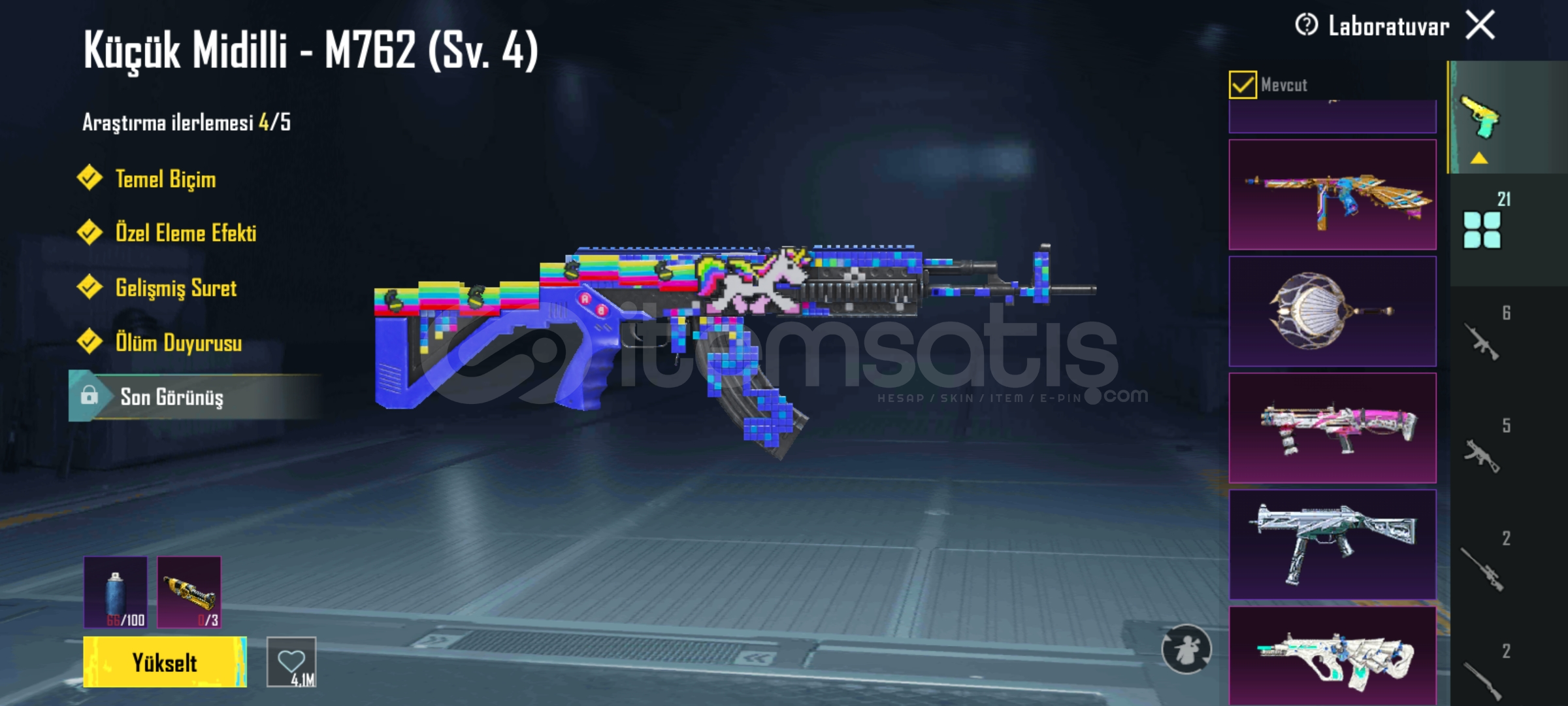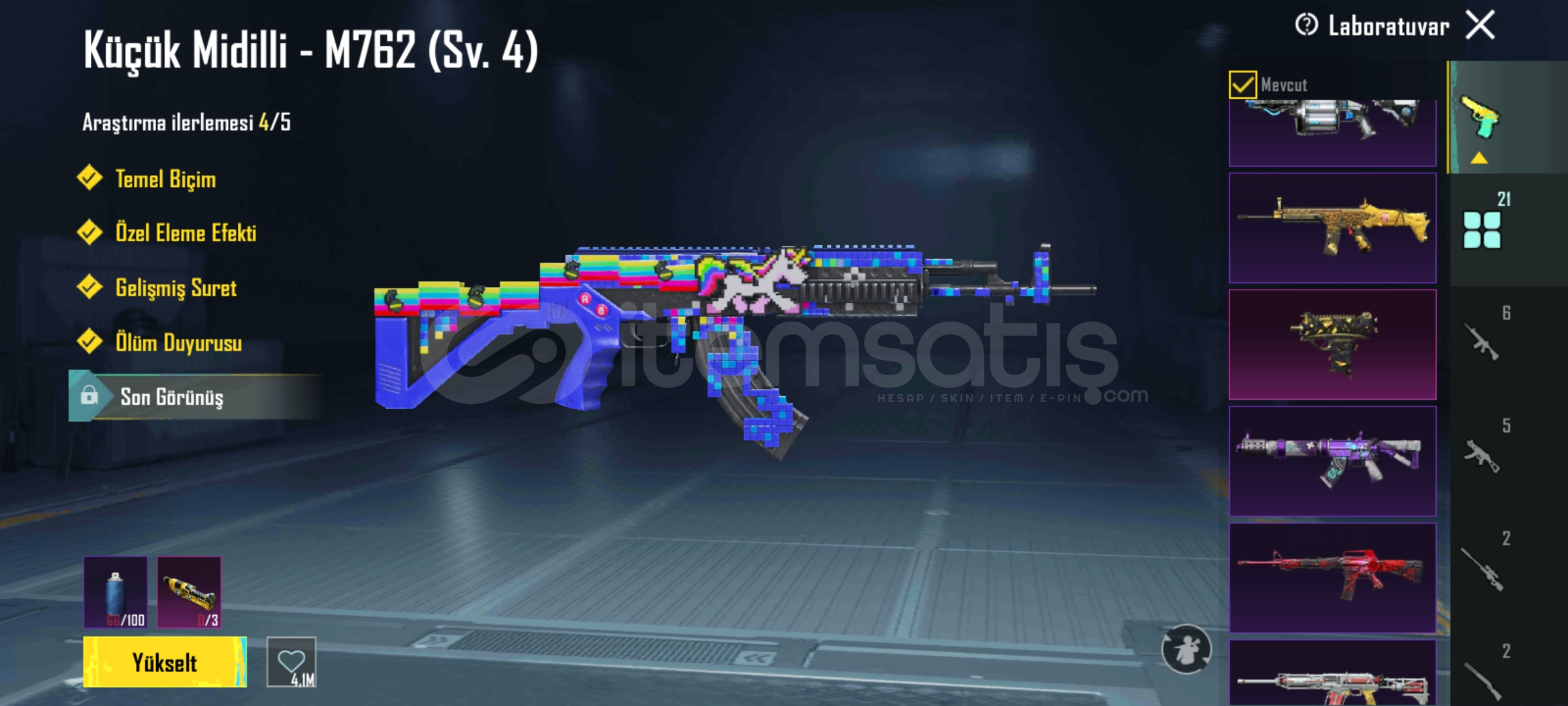 c5s14 fatih‎74 destansı‎saç yüz mevcut‎değişimler aktif ‎form geçmişi temiz‎21 yükseltilebilir‎m7 4lvl‎m24 4 lvl ‎mg 4 lvl ‎m249 3 lvl‎ve daha fazlası‎x suit 1 lvl‎6 özel set
