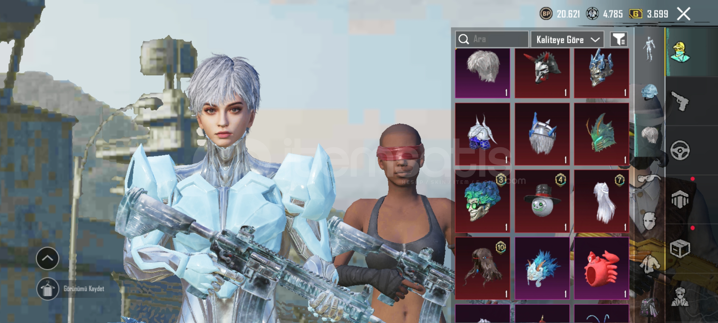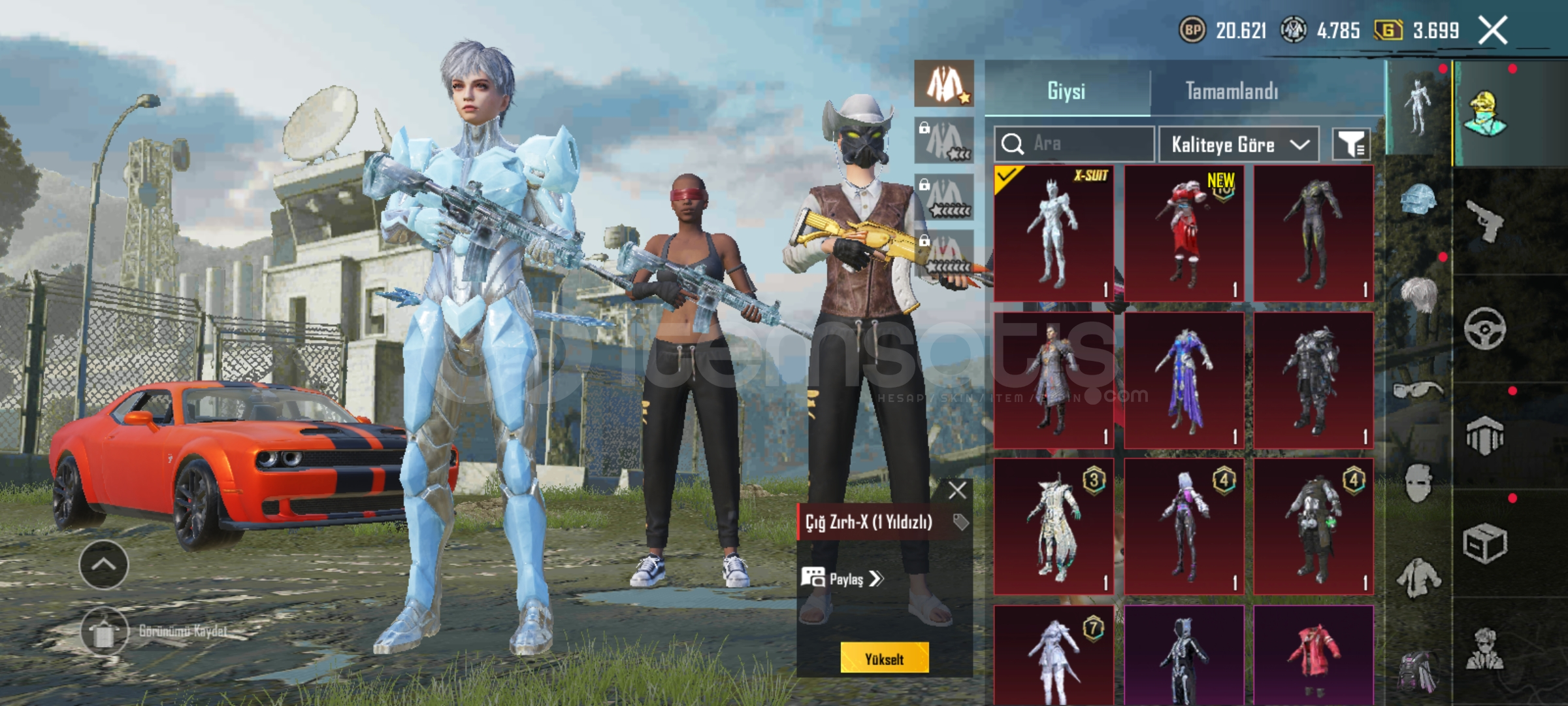 Fiyatına göre güzel hesap6 adet yükseltilebilir silah m416 4 seviye1 adet buzul xsüit10 adet destansı kıyafet1 adet dodge1 adet SSC tuatra1 adet buzul kaykayKısacası buzlar full set