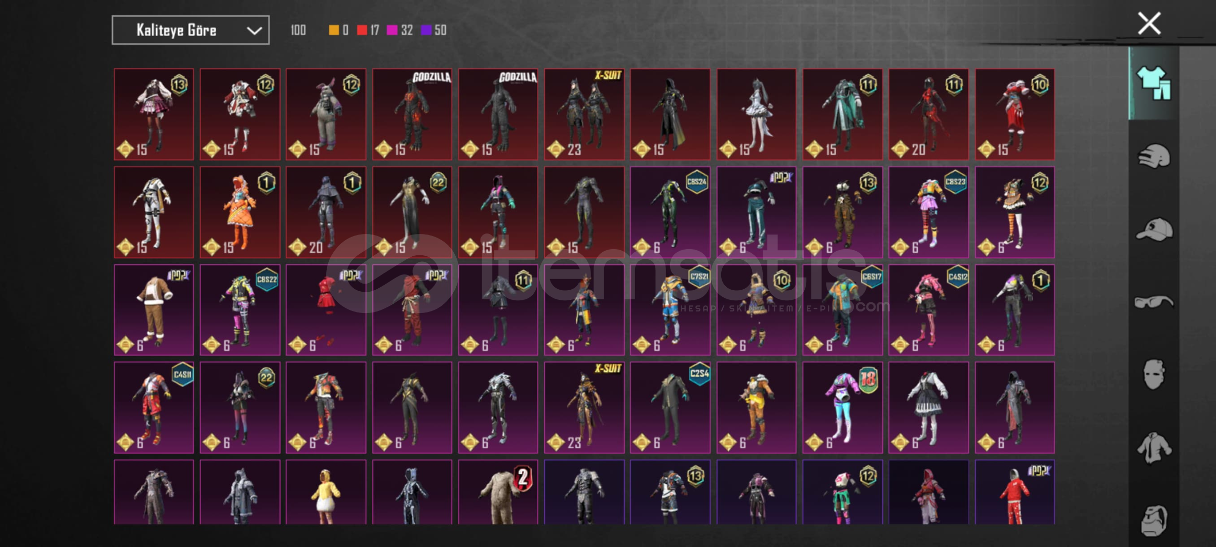 Hesap bi kaç yıllık güzel hesaptır 2 x suit kıyafet, buz kask, işgalci seti, firavun m24, ruh kedi yoldaşı ve bütün arabalarda kaplama vardır bu fiyata on numara hesap