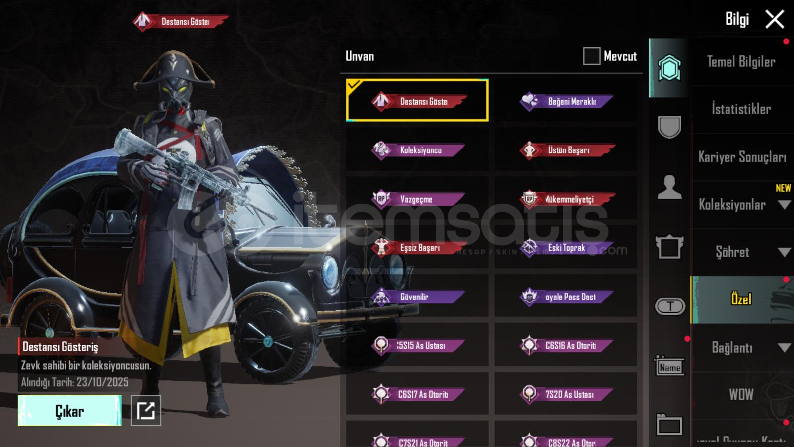 Acil satılık emek hesabı (içindekiler)Buz diyarı m416 (4)Orman baskını groza (4)Küçük midilli m7 (4)Yedi denizler m24 (1)Yasak düşler ump (1)Yakut fırtına amr (1)Altın pençe p90 (1)Ve birçok rp geliştirebilir silah sikini full.Hesapta bir destansı kask vardır rock yıldızı kask bir geliştirebilir araba (gizemli cazibe uaz (1) 50 seviye koleksiyon destansı göste...
