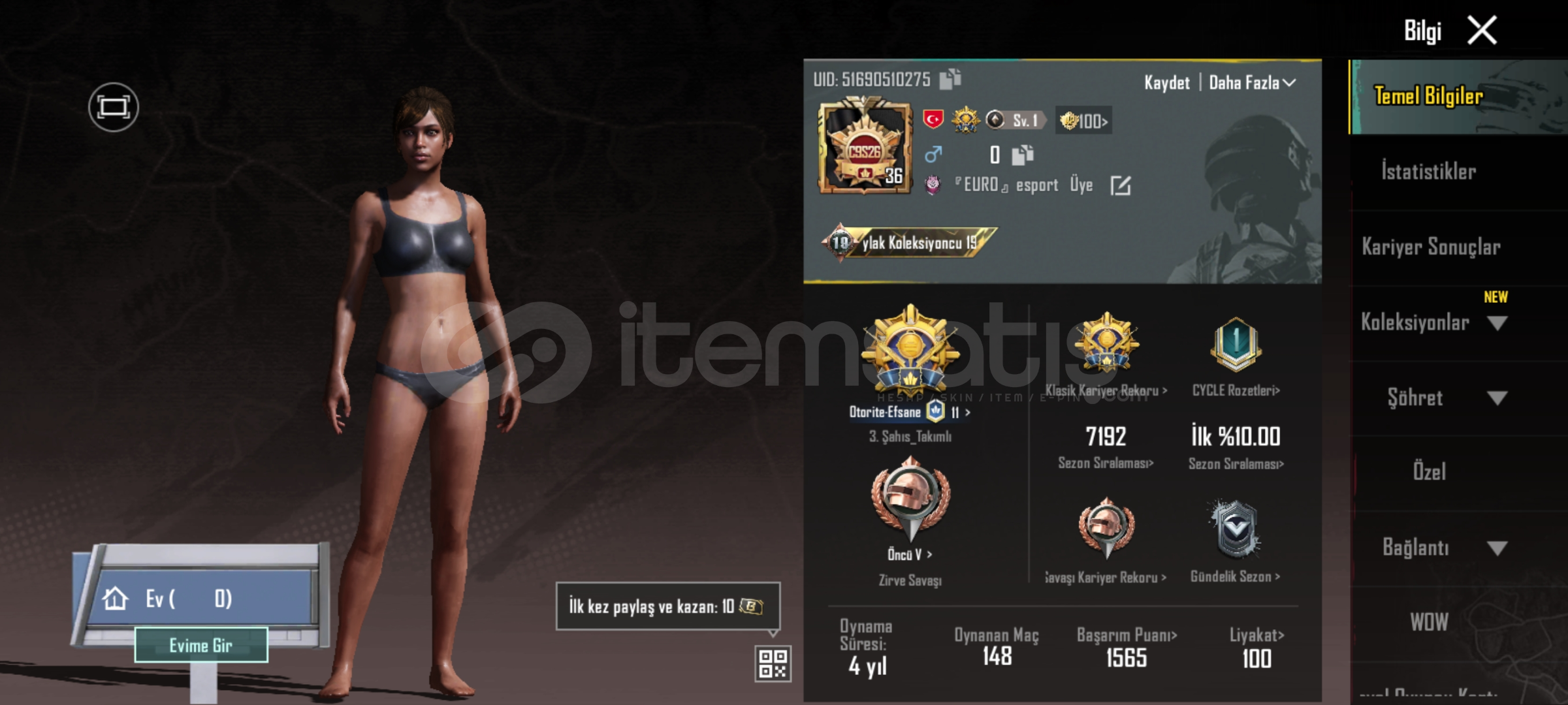 TANTANASHOPY EFSANE HESAPLARIN BURDA!HESAPTA KIYAFET PEK YOK KIYAFETE ÖNEM VERMİYORSANIZ TAM SİZLİK BİR HESAP 1 KEZ RP AÇILMIŞ VE FULLENMİŞTİR BU SEZON AS OTORİTESİ 11 KASTIM MAİLİ FELAN DEVREDECEĞİM HERHANGİ BİR SORUN YAŞAMAZSINIZ •Detaylar için mesaj atınız (HESAP 3 AY GARANTİLİDİR)