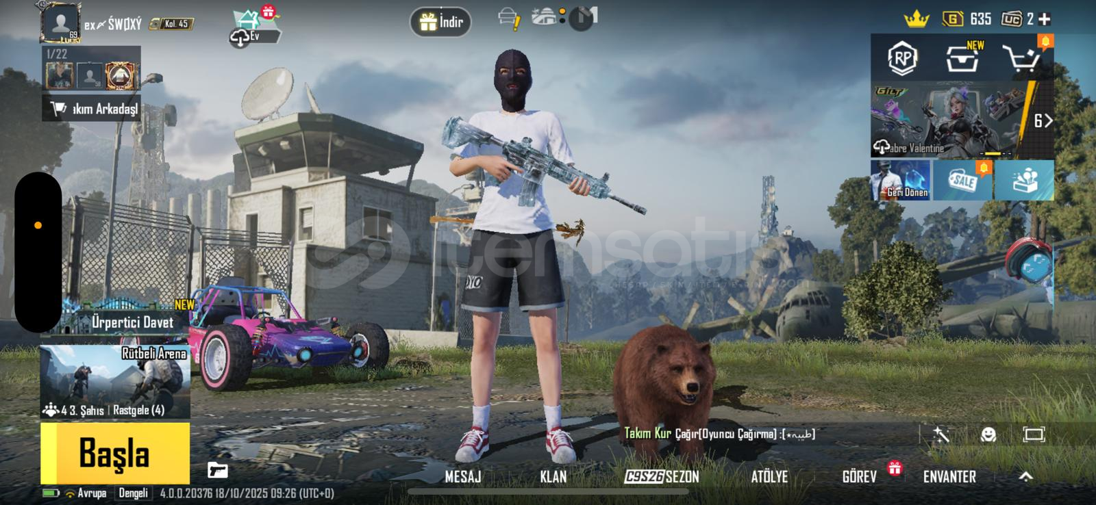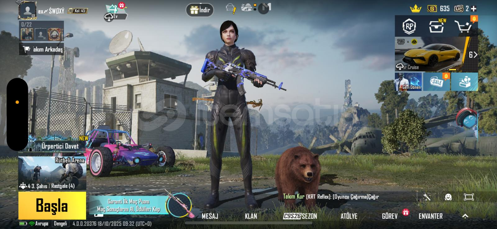 69 seviyeBuz diyarı M4 4 seviyeMor intikam AWM 2 SEVİYEMidilli m762 2 SEVİYE14 yükseltilebilir silah36 destansı kıyafet 18 destansı emoji