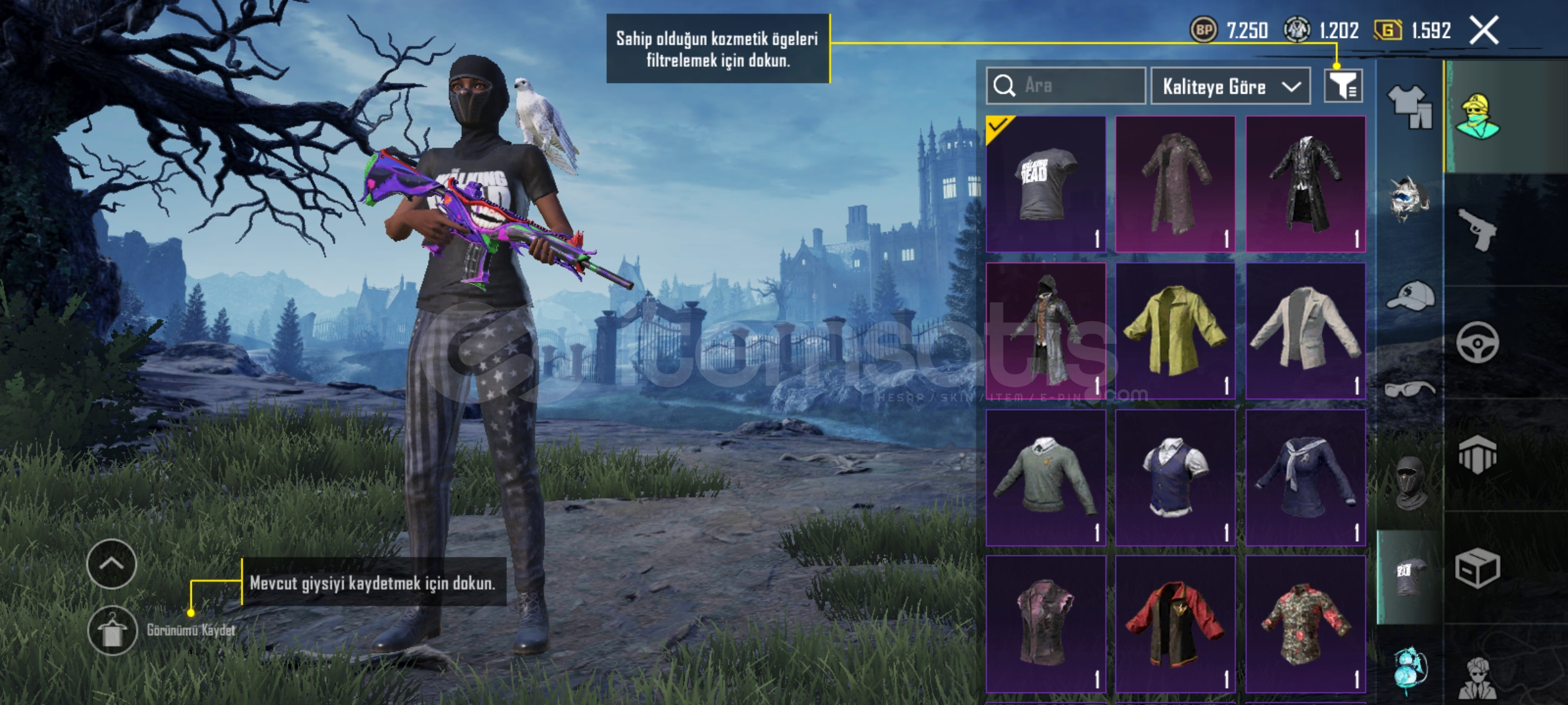🔹 Kostümler: M416 Glacier, Avm, Kar98 desenleri, mitik setler]