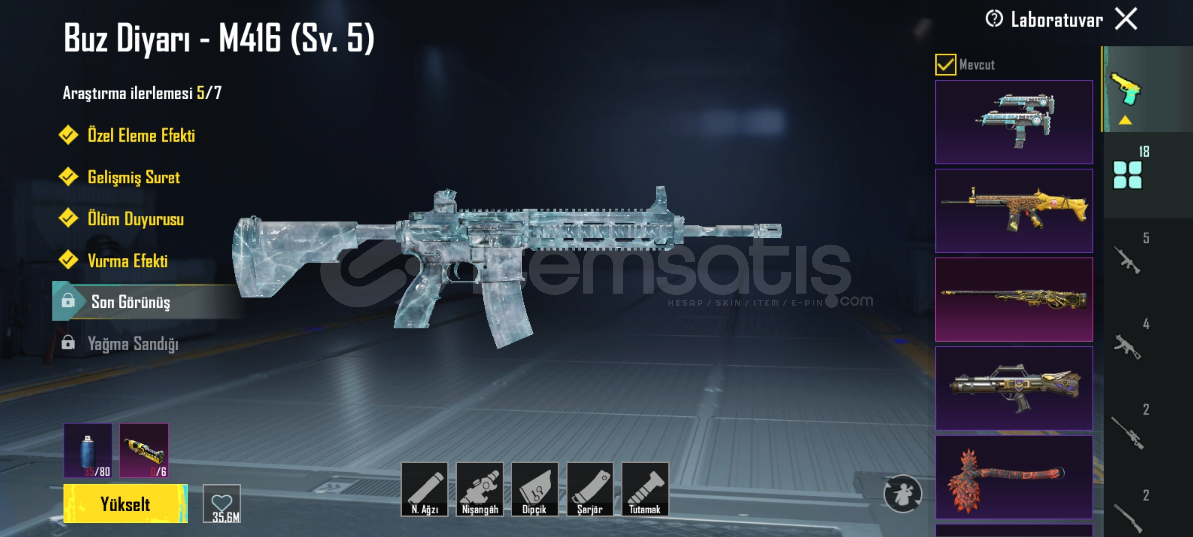 Buz m4-5lvSiber kedi p90-4lv AVM-2lvYeşil Lotus var