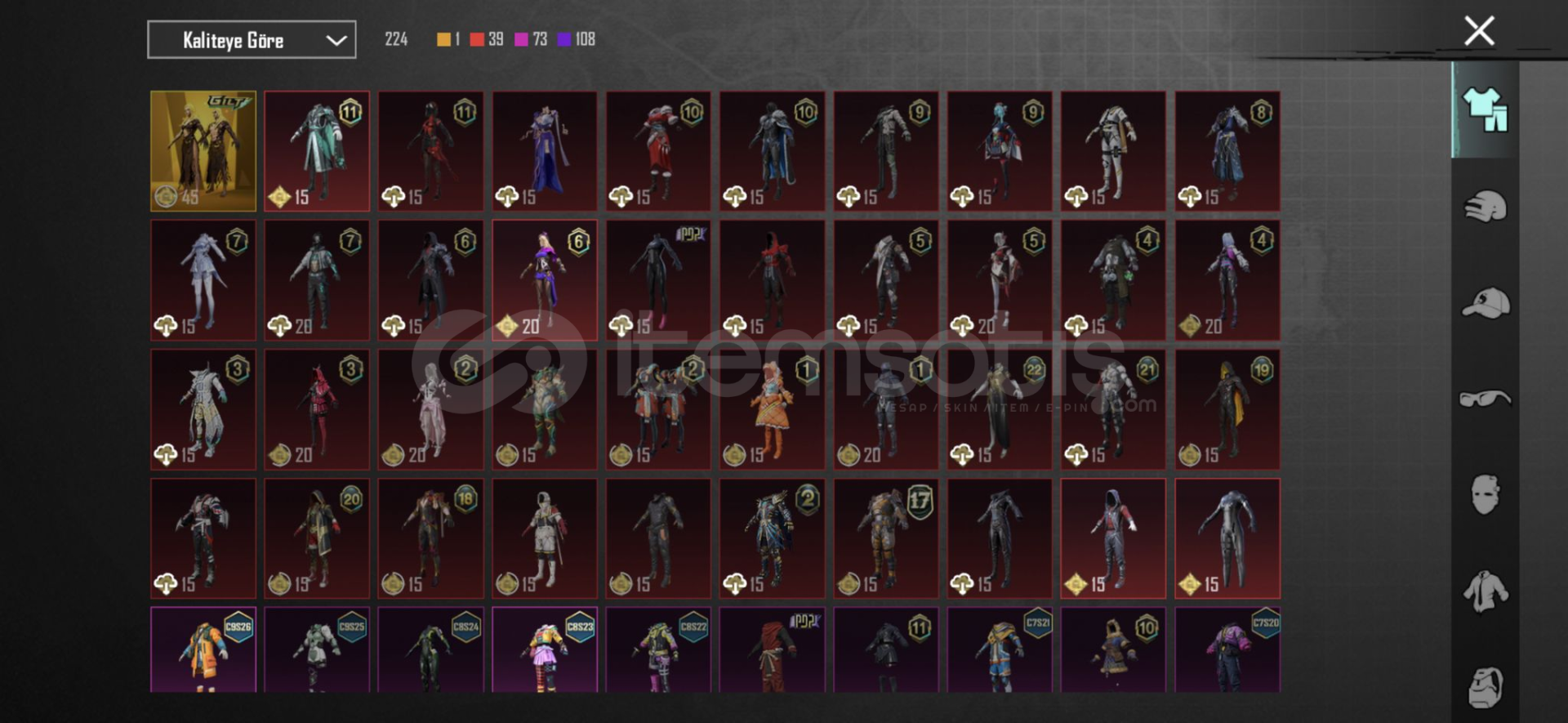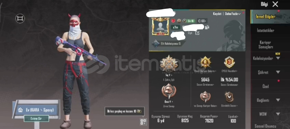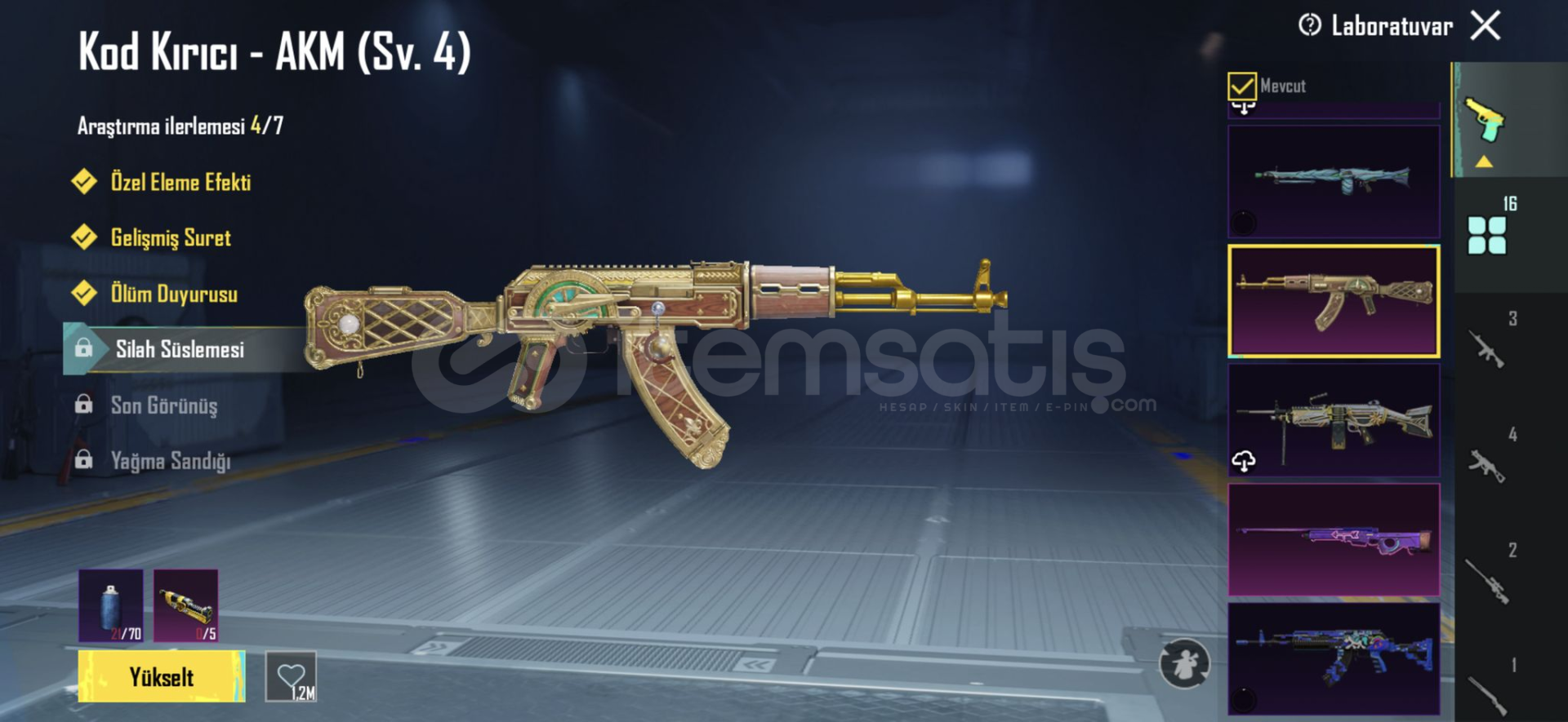 Kod kırıcı AKM 4svKış kıraçilesi m249 sv4Ejderha mg3 4svDenizlerin evrimi ump maxxMidili m762 4svMor intikam AVM 3svToplam 16 yükseltilebilir silahDalgıç setiDistopya setiSık kutu Kafa setiGöksel Gizem setiHesap 77 seviye3 defa Fatih olunmuşTemiz bağ56 seviye koleksiyon seviyesi65 destansıPazarlık olur