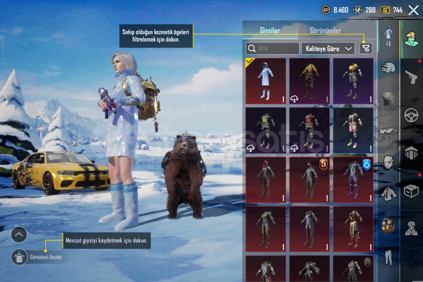 Hesab 73 seviye 54 seviye koleksiyonİçinde 100 uc vardır 4 spor Dodge araç vardır değeri yaklaşık 20 bin TL Dodge hornet GLH concept kırmızı çizgi Dodge changer SRT hellcat tuscan torqueDodge changer SRT hellcat jailbreak mor zehir Dodge changer SRT hellcat Blaze65 destansı İşgalci, buzul seti vb şey vardır 2 destansı kask ve firavun çanta da mevcuttur 20 yüksektilebilir silah vardır ...