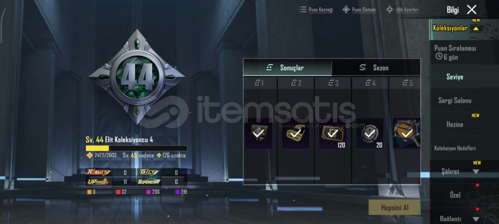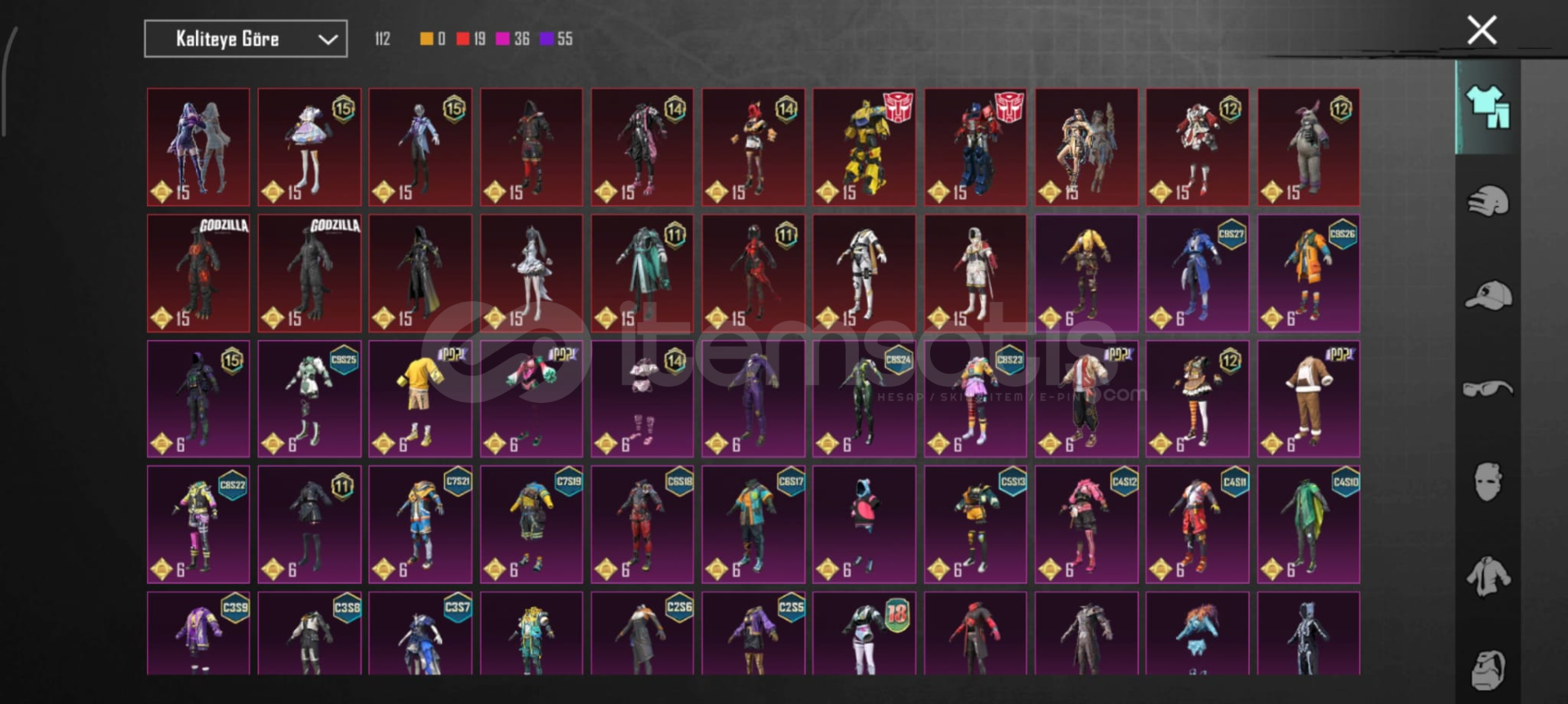 HESAP 32 DESTANSI 11 YÜKSELTİLEBILİR SILAH VAR 4 TANE ÖLÜM DUYURULU SİLAH VAR1= SCARL 3 SV2= ALEVLİ GODZİLLA SAVAŞ BALTASI 3 SV3=ALTIN PENÇE P90 4 SV4=DİKENLİ ŞAFAK M16 3 SVMİDİLI M762 3 SV 4 SV OLMASIN1 1 MATERYAL LAZIMBAYA SİLAH SKİNLERİ VAR 4 SEZON ROYAL PASS AÇIK!!!! 3 SEZON BONUS PASS AÇIK!!!!3 ADET YÜKSELTİLEBİLIR ARABA VARDIR GÜVEN SIKINTINIZ OLMASIN TÜM K...