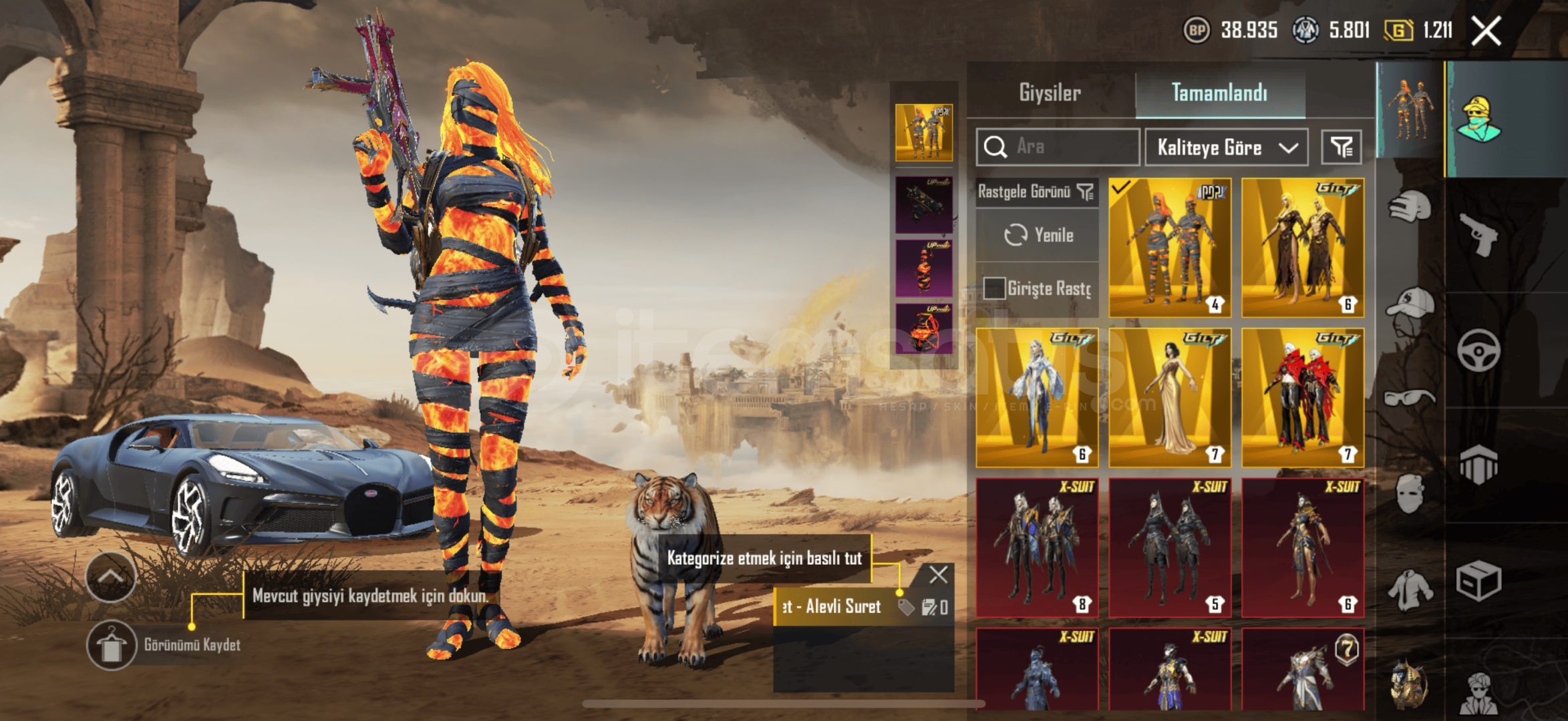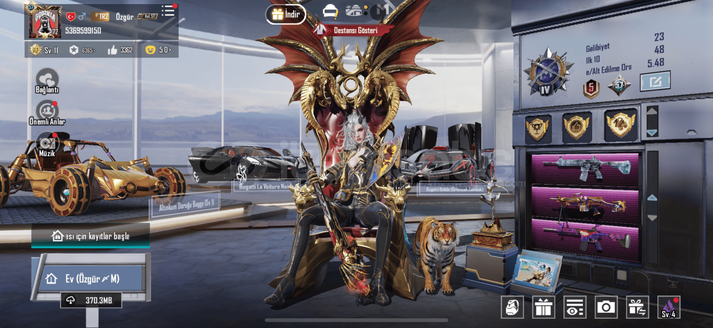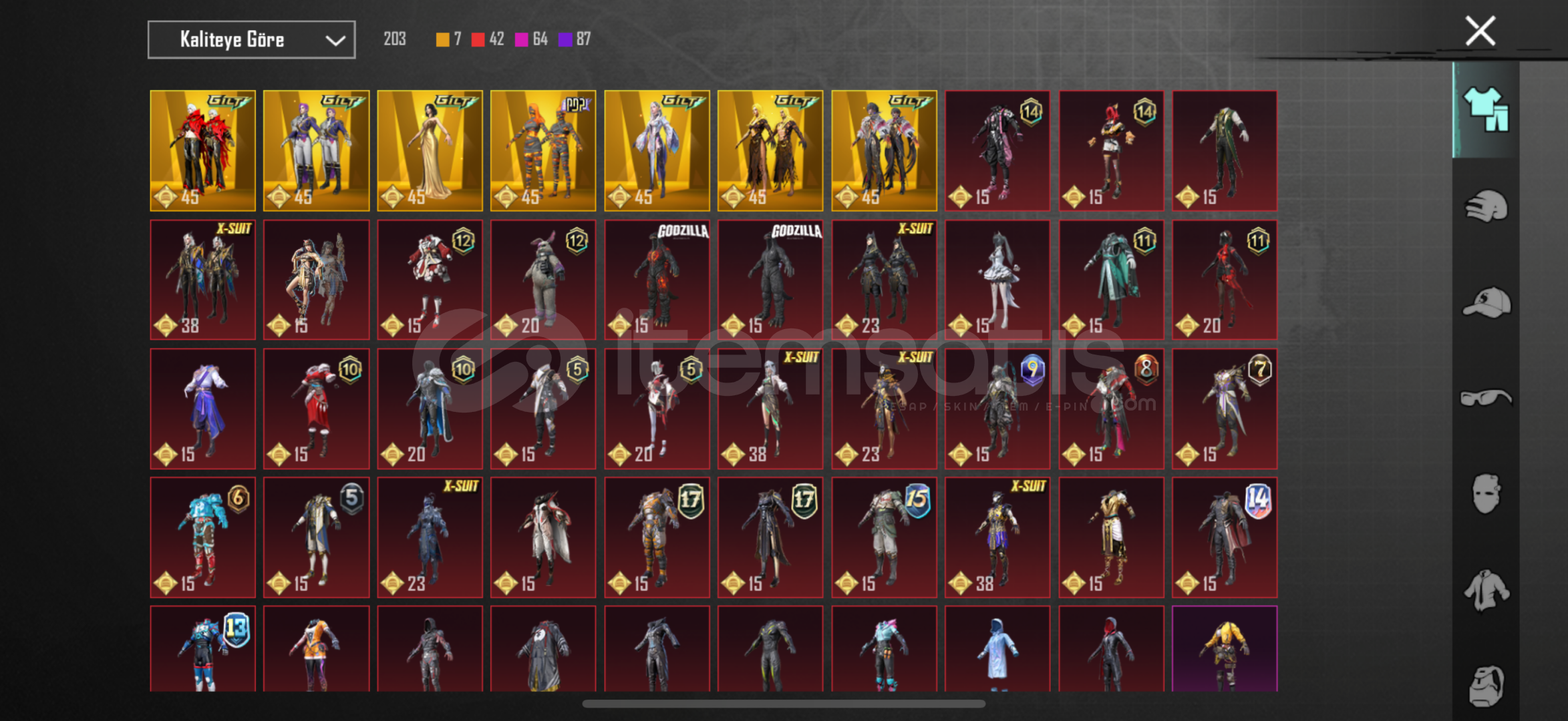 57 SEVİYE KOLEKSİYON 8 NİHAİ 74 DESTANSI 159 SİLAH KAPLAMASI 21 YÜKSELTİLEBİLİR 7 ÖLÜM DUYURULU 6 X SUİT 2 SPOR ARABA 2 YOLDAŞ KOMBİNLİK EMOJİ DOLU HESAP