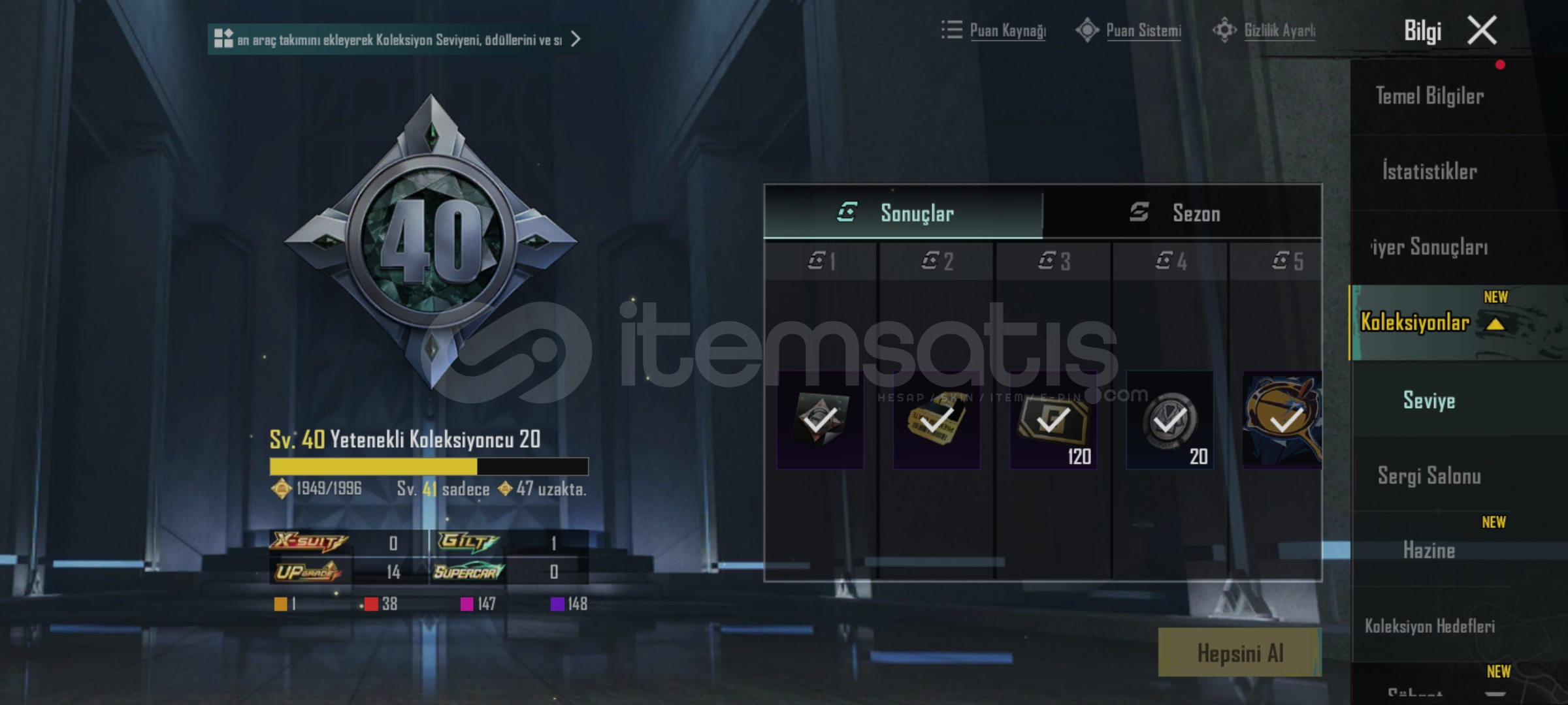 52 seviye40 koleksiyon38 destansı14 geliştirilebilir silahUmp (1 seviye)Tava (3 seviye)Kar98 (3 seviye)M16 (3 seviye)Sks (2 seviye)Mk47 (1 seviye)P90 (3 seviye)DBS (4 seviye)Pala (3 seviye)MS200 (3 seviye)Scar (3 seviye)MP7 (1 seviye)SLR (1 seviye)VSS (1 seviye)4 mytic force setiZırhlı avcı setiBuzul setiÖlüm makinası setiSeri katil setiÜrkütücü güzellik Nihai seti4 yükseltirilebilir araba6 sezon RP açılmı#...