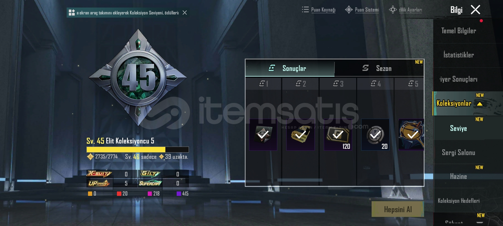 74 seviye43 koleksiyon 20 destansı5 geliştirilebilir silah Midilli (2 seviye)M24 (3 seviye)TAVA (3 seviye)SLR (2 seviye)KAR98 (1 seviye)Sürümcü mevcutNadir kombinler vardırVideo👇https://youtu.be/cyHandLISkY?si=ts-vvvn137dhK1m2UFAK PAZARLIK PAYI VARDIR !!!BAĞLAR DEĞİŞİME AÇIKTIR !!!Daha fazla bilgi edinmek için yazabilirsiniz.