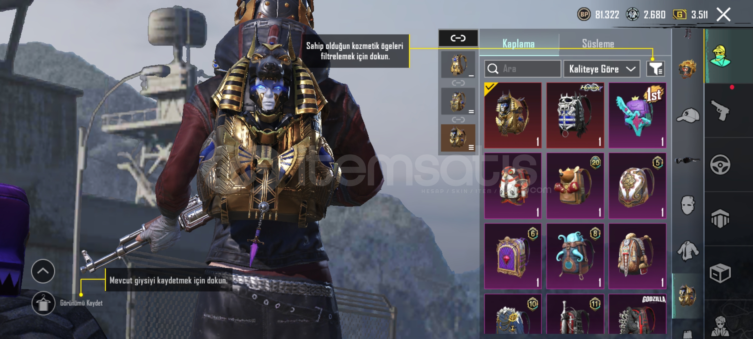 Hesap özellikleri43 DESTANSI11 yükseltilebilir nadir silahlarX suitFiravun sırt çantası2 materyalYükseltilebilir canavar kamyon50 k civarı popülerlik ve daha neler neler var hesaptaİstediğinizi çekinmeden sorabilirsiniz