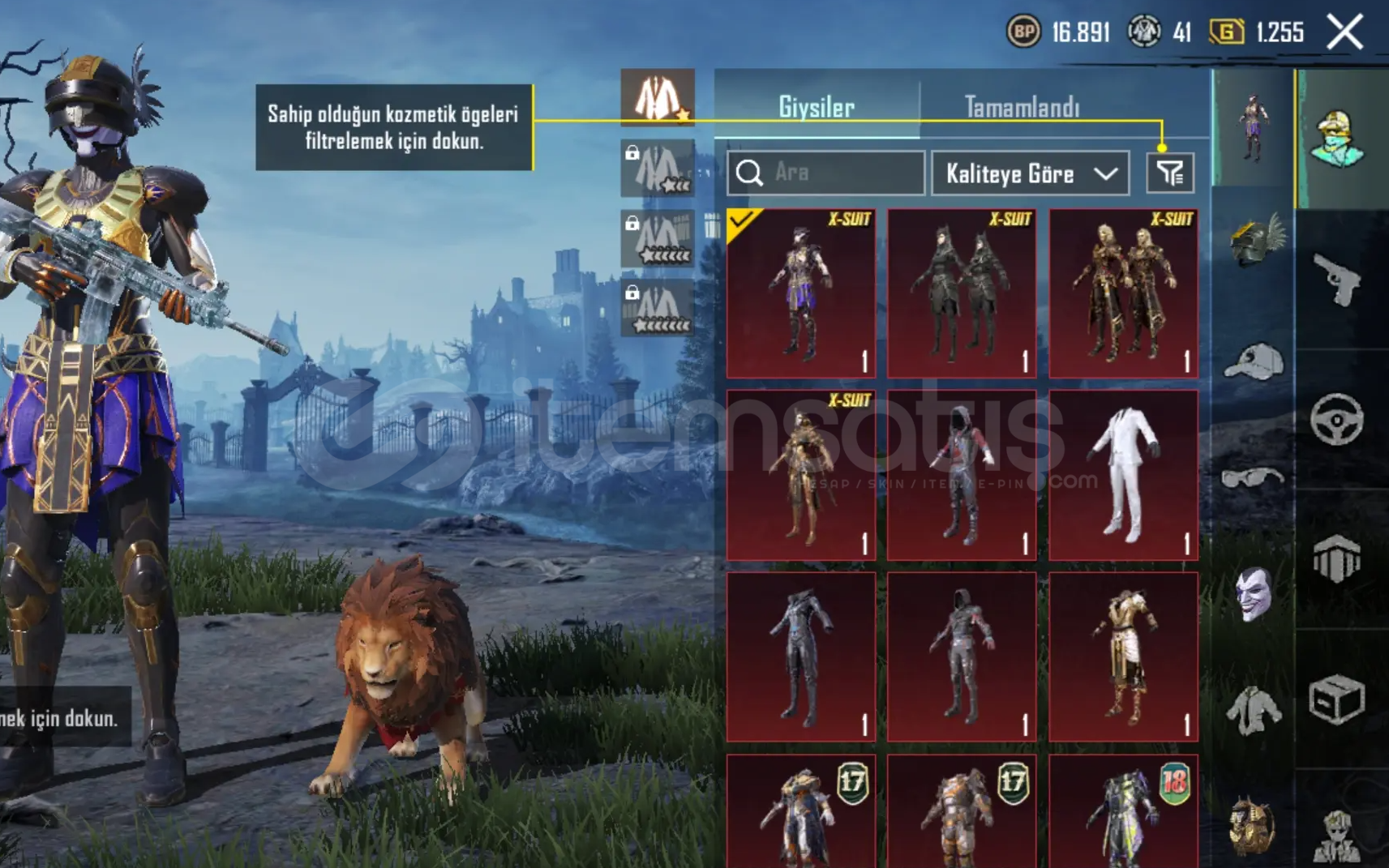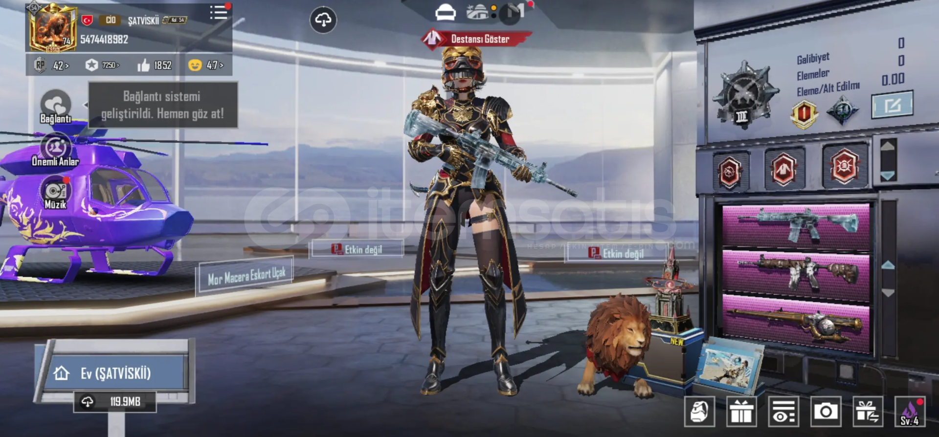 4 X Suit Aslan X 2 Seviye Firavun X 2 Seviye 14 yükseltilebilir Buz 5 Groza 4 M7 4 Thamson 3Scar L 2 7 . Sezon Hesabı2 Yoldaş3 Destansı Amblem +1 Mataryel