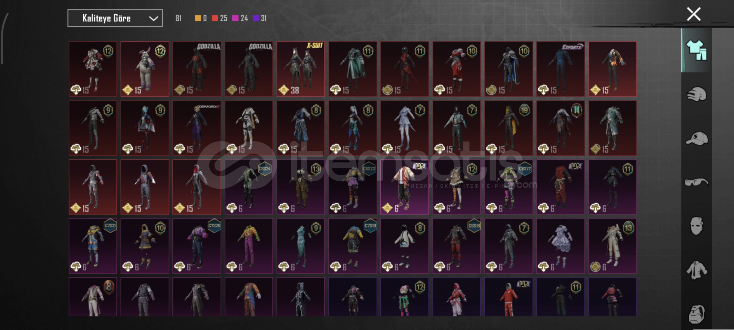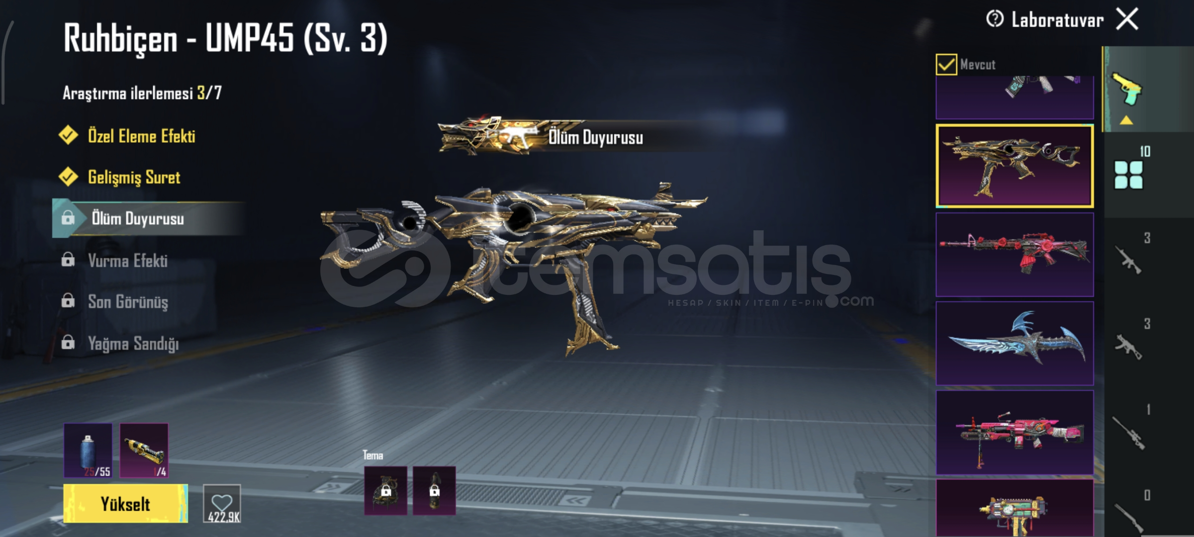 Hesapta anukhura c suit 2levelRuhbiçen ump 3lvlKüçük Midilli m762 4lvlGece glatyatoru bizon 3 seviyeDeniz rüyası melodisi SLR 2lcl Ruhanı muhafız uzi 3lvl Sokak grafitisi m249 3lvlDikenli Şafak m4A1 2lvl Bunlardan hariç de var toplam 10tane yükseltile bilir hesap bilgi için yazabilirsin pazarlık var