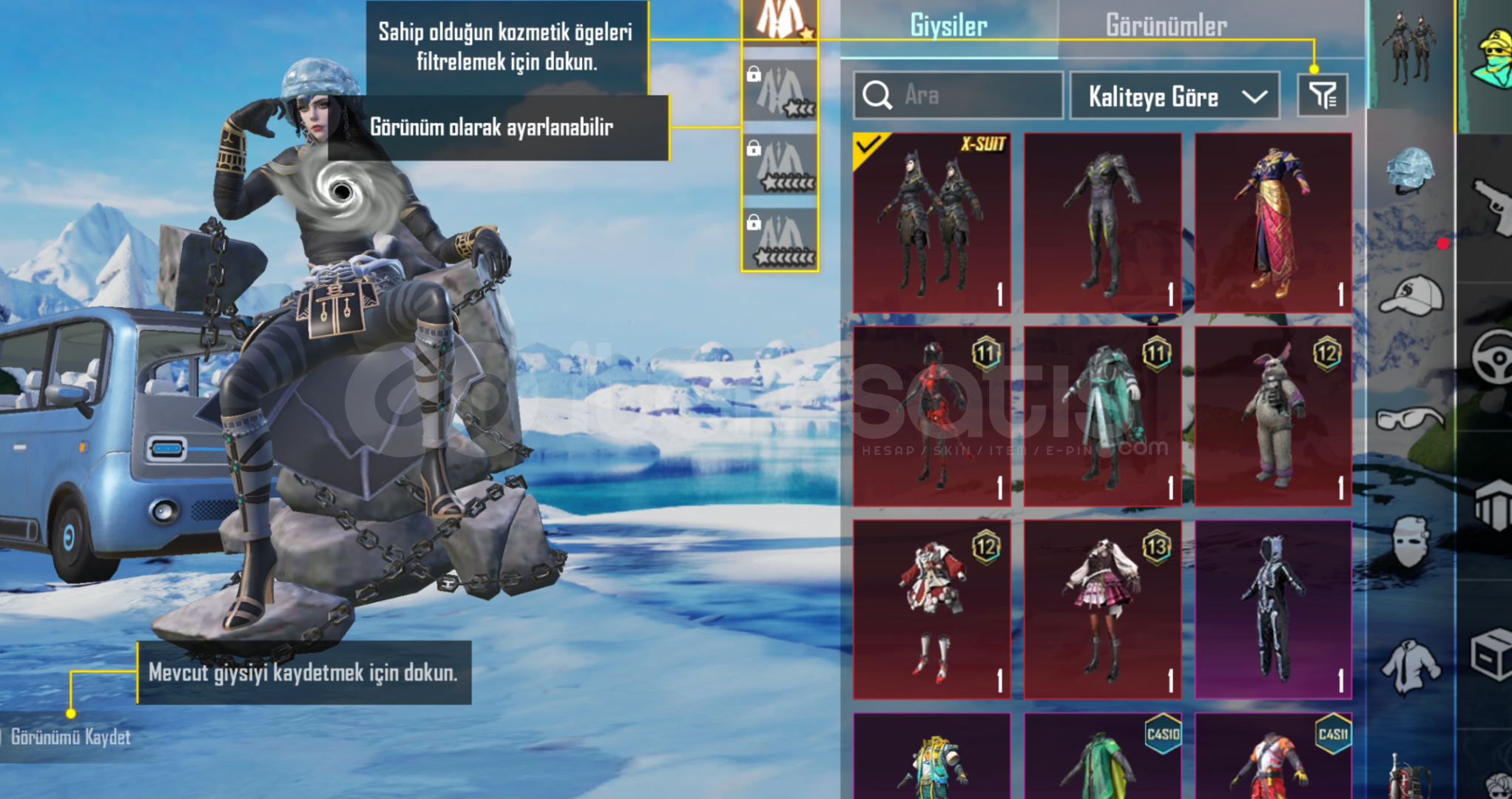 HESAP GORUNDUGU GIBIDIRISGALCI X SUIT BUZ KASK VE 3 YUKSELTILEBILR SILAH VARDIR FIYATTA PAZARLIK YAILIRBUTUN BAGLAR DEVREDILECEKTIR