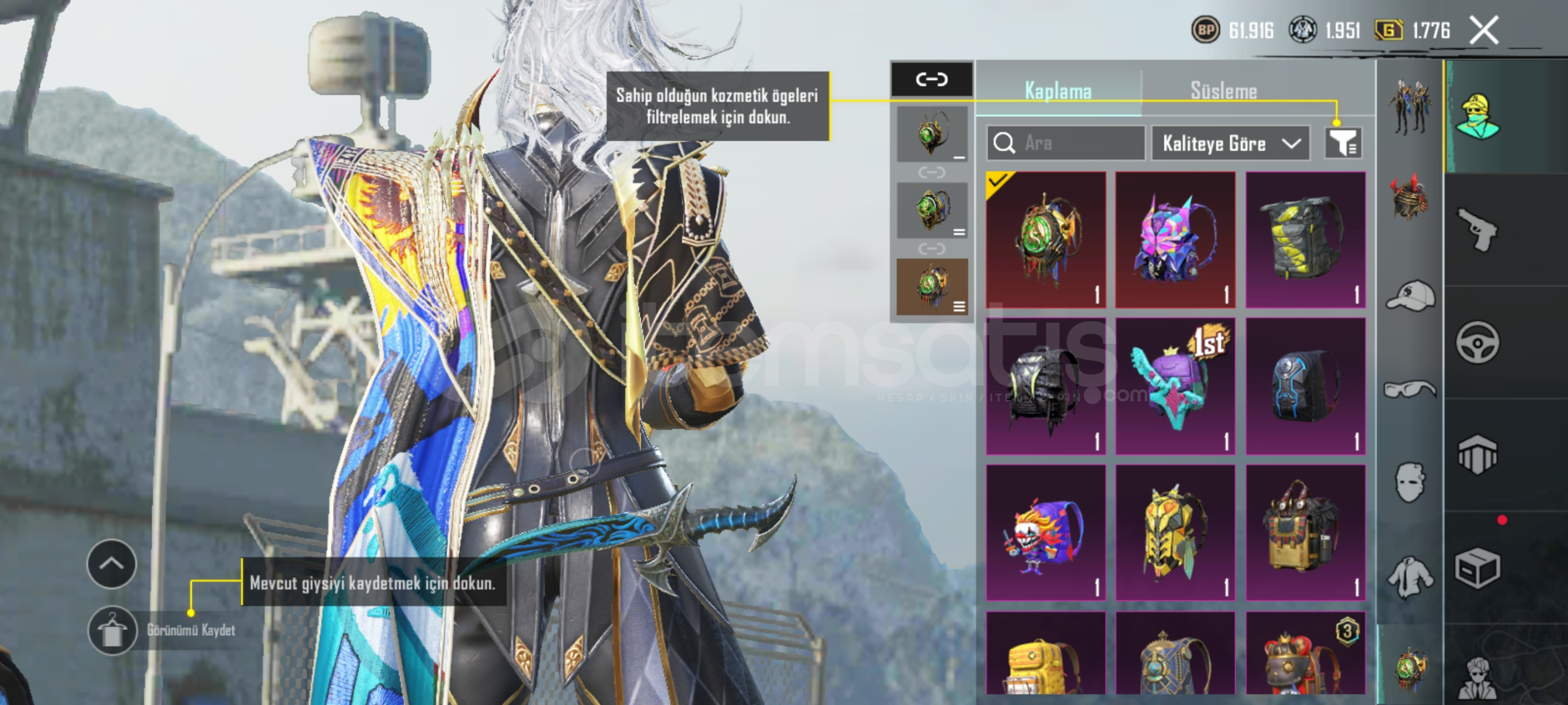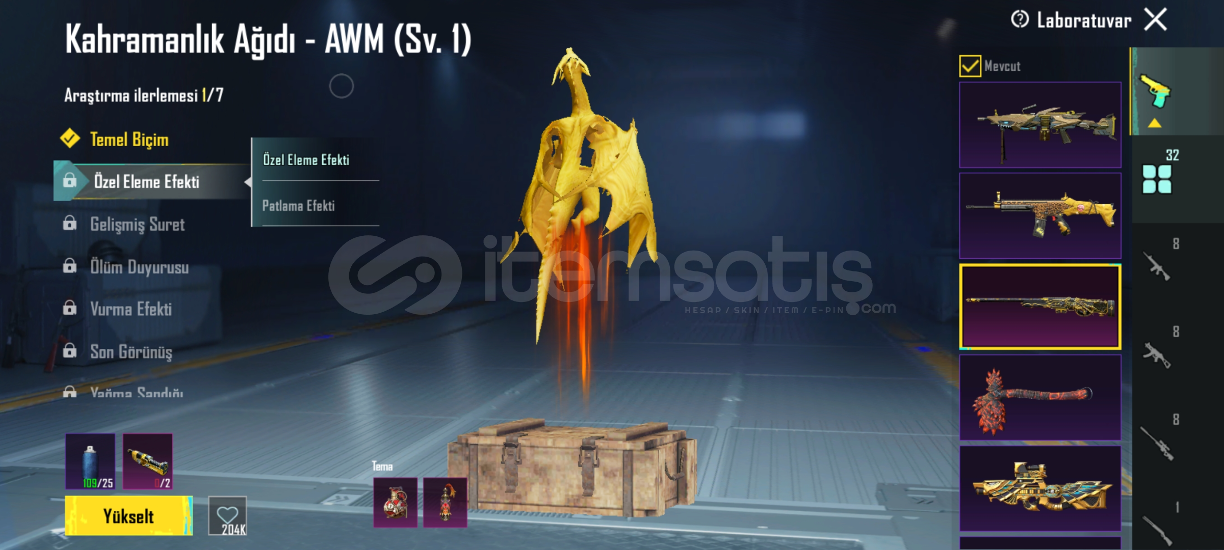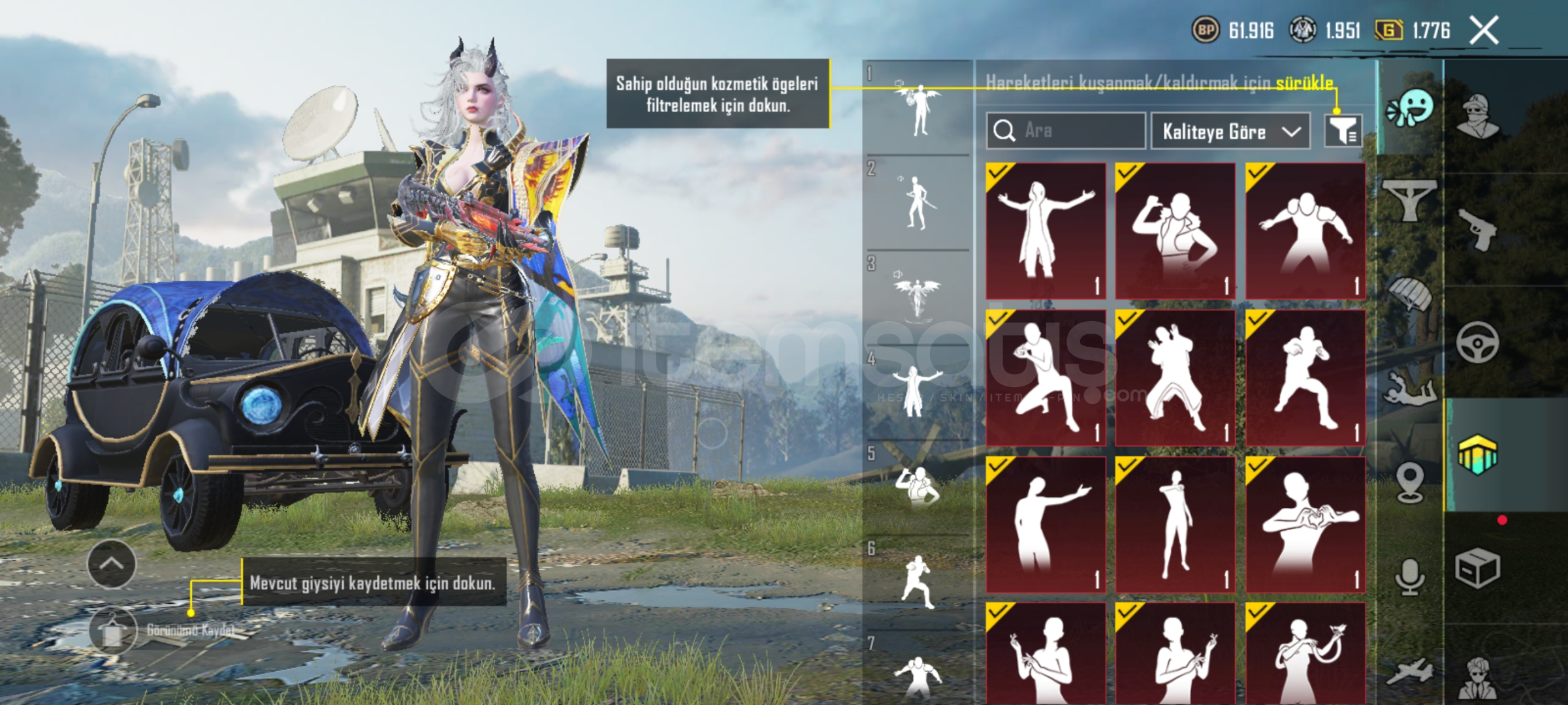 Hesapta 84 destansi vardır.Hesap üstünüze devredilecektir.Pazarlik payı vardır,4 adet destansı amblemi vardırİçeriği:Dravion Zırx(2sv)Ejderdoğan kanatlarıÖzel emojilerCehennem Çığlığı-AUG(sv.4)Şiddet dalgası-UMP(sv.4)Katil Balkabağı-Groza(sv.4)Öldüren Nağmeler-M24(sv.4)Yedi Denizler-M24(sv.4)Kahramanlık Ağıdı-AWM(sv.1)Altın Pen&c...