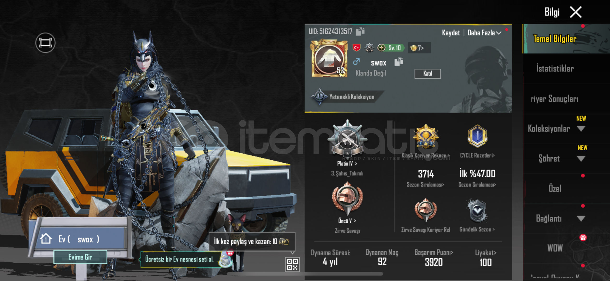 Anukra X-Suitİşgalci Seti Ve maskesi ve dansımedyum kaskfiravun çantabalenciaga seti10 tane yükseltilebilir silah 2 tane yükseltilebilir araçRp açıktır 100 olunca +720 uc gelicektirPazarlık Vardır