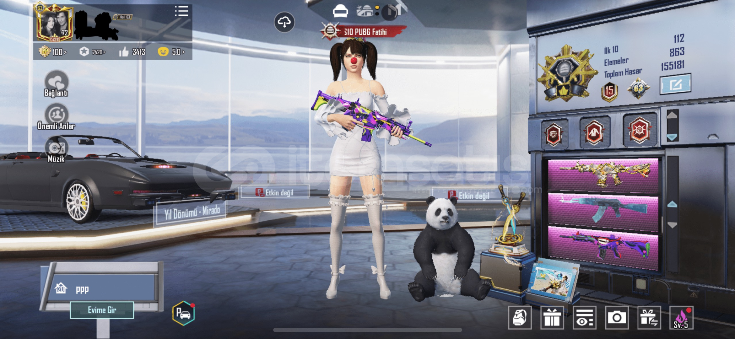 Merhaba arkadaşlar hesap fatih olmuş hesaptır bol kombinli sezonun royale pass full + bonus pass de açılmıştır toplam 10 ad mystic amblem var istediğiniz emojili seti alabilirsiniz full+full hesap kombin klasik kimseyi yormadan uzun tutmuyorum cüzi miktar indirim olur detaylı video için özele gelebilirsiniz..komutan fulananas fullşehir sakinl altmumya fullcrew üstbeyaz mumya2 6 lvl m416YIL DÖNÜMÜ UMP3X ...
