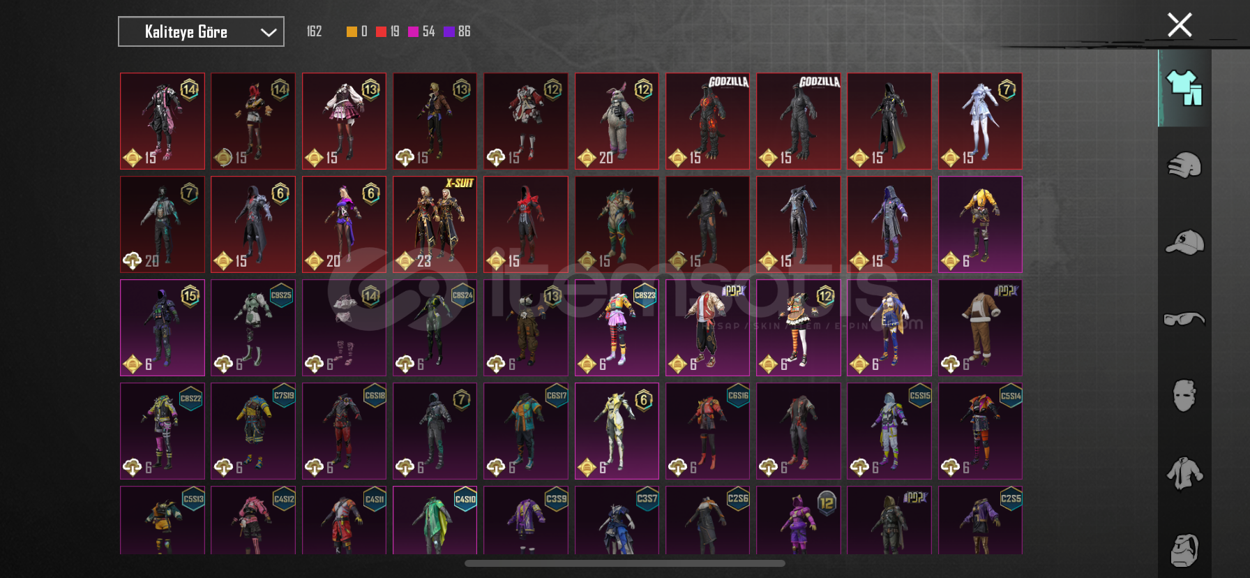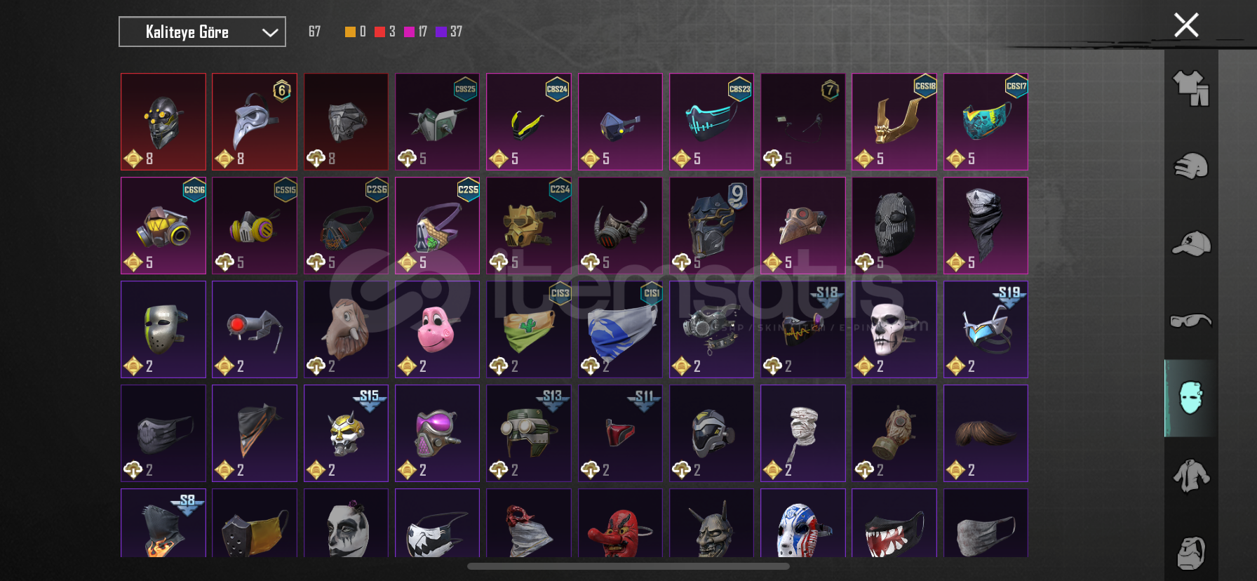 hesap 74 seviyedir yeni sezon rpsi açılmıştır.11 yükseltilebilir mama tabancası - Scar-L sv.1Bakır Gezgin - NS2000 sv.1godzilla savaş Baltası sv.1yamalı tavsan mk47 sv.1gece gladyatörü - pp-19 sv.1zarif leylak thampos sv.3 ekstra Acılı - tava sv.1öldüren nağmeler m24 sv.1midilli m762 sv.4 vahşet uzi sv.2 EMP ump sv.173 seviyedir bağlar temizdir hepisini devredilcekt...