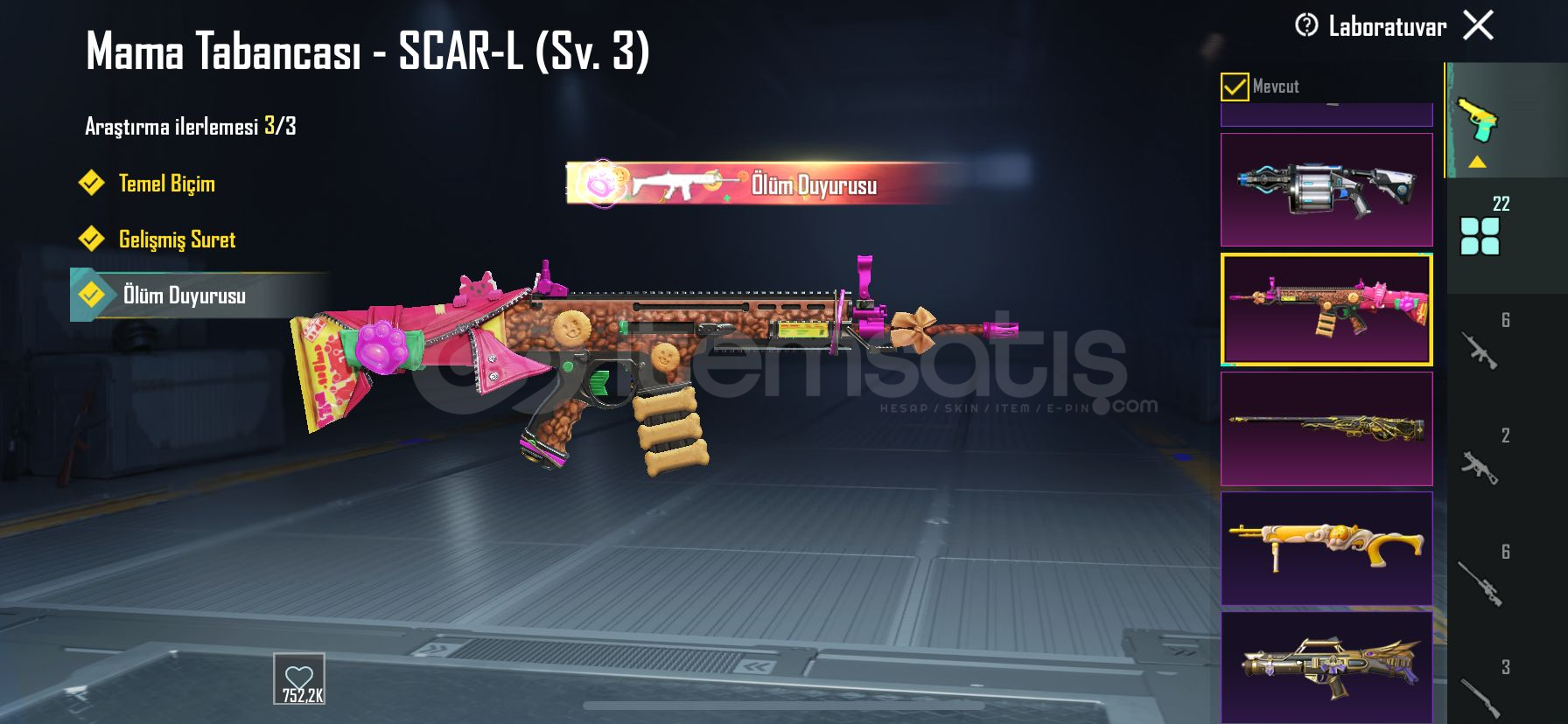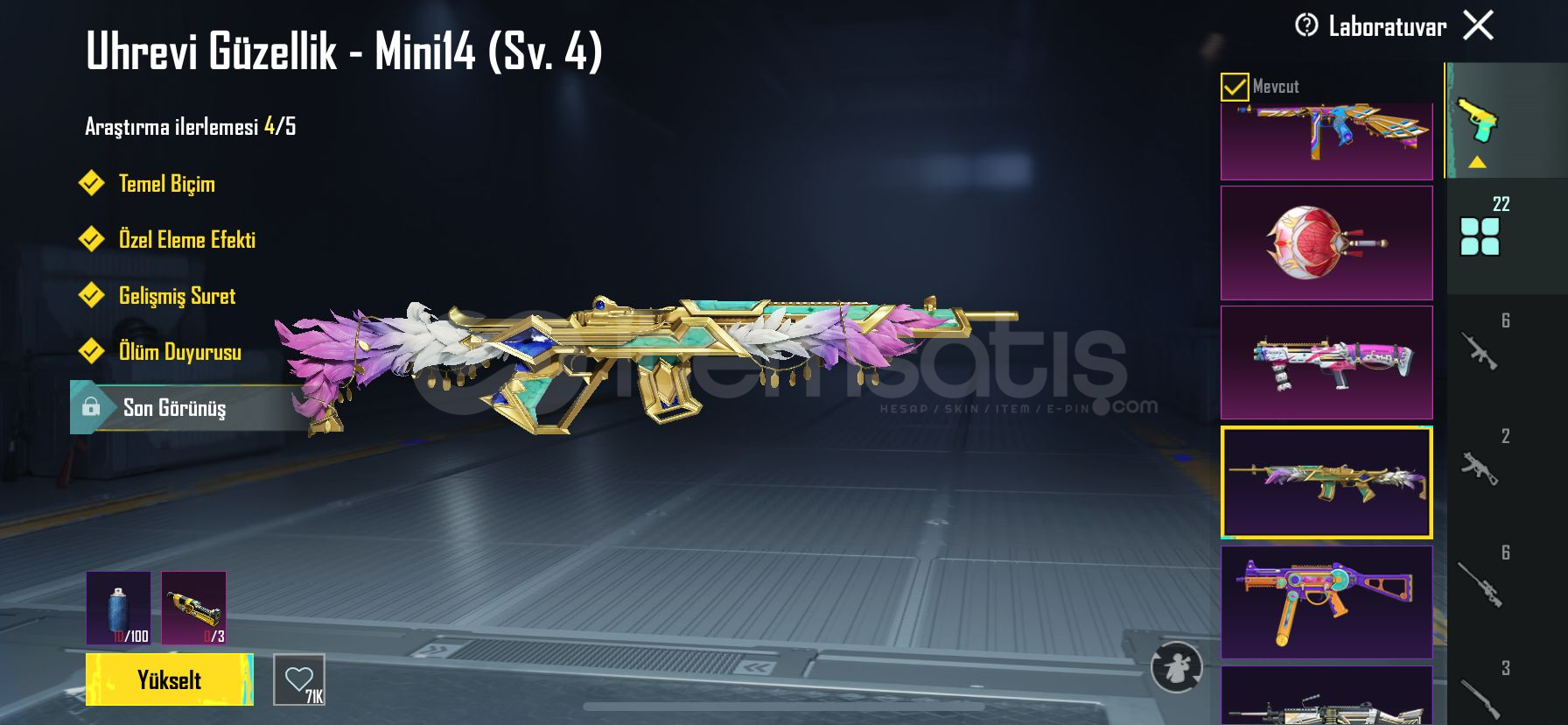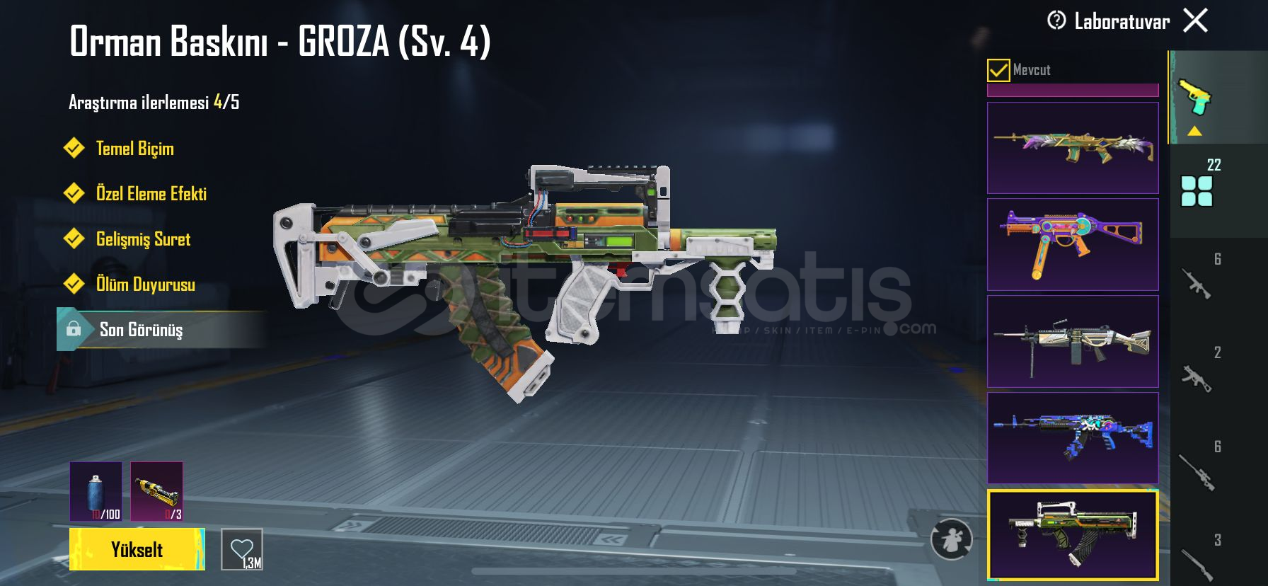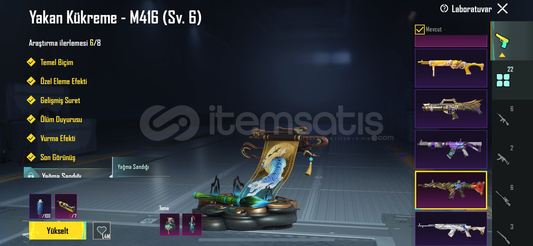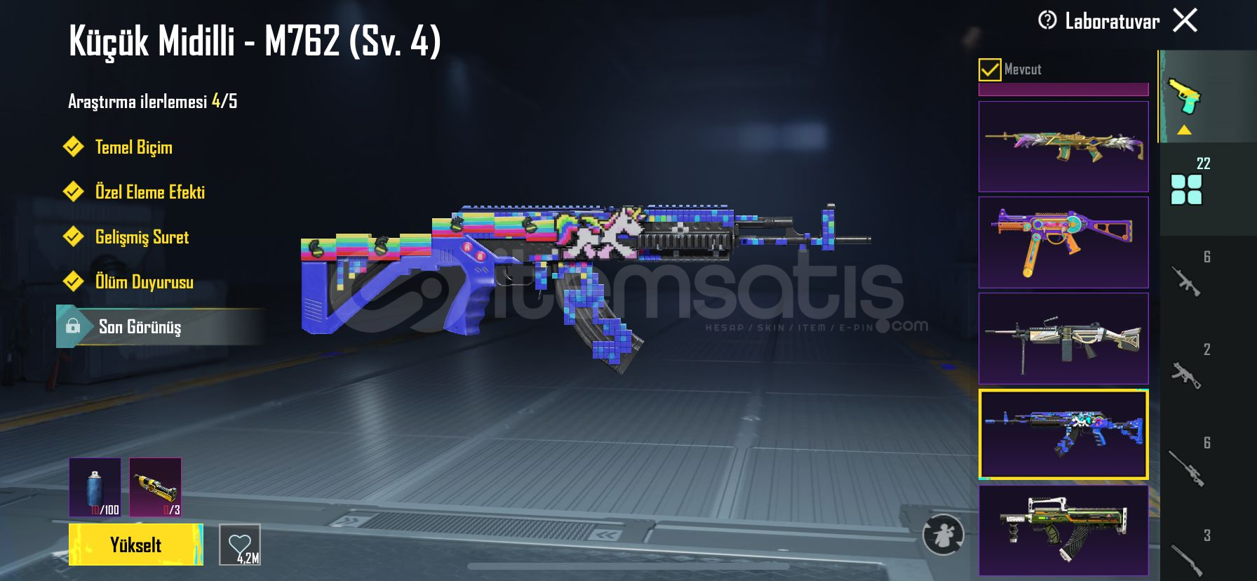 🧨 Yükseltebilir SilahlarYakan Kükreme M416 – 6. Seviye ➤ 6x / 4x / 3x eklentileri açıkYILDÖNÜMÜ UMP45 (KENDİLİĞİNDEN 7 SW) ➤ 6x / 4x / 3x eklentileri açıkOrman Baskını Groza – 4. SeviyeKüçük Midilli M762 – 4. SeviyeUf Revi Güzellik Mini-14 – 4. Seviye8 Bitlik Patlama UMP45 – 4. SeviyeLider Panther DBS – MAKS SeviyePeri Cazibesi Tava &nda...