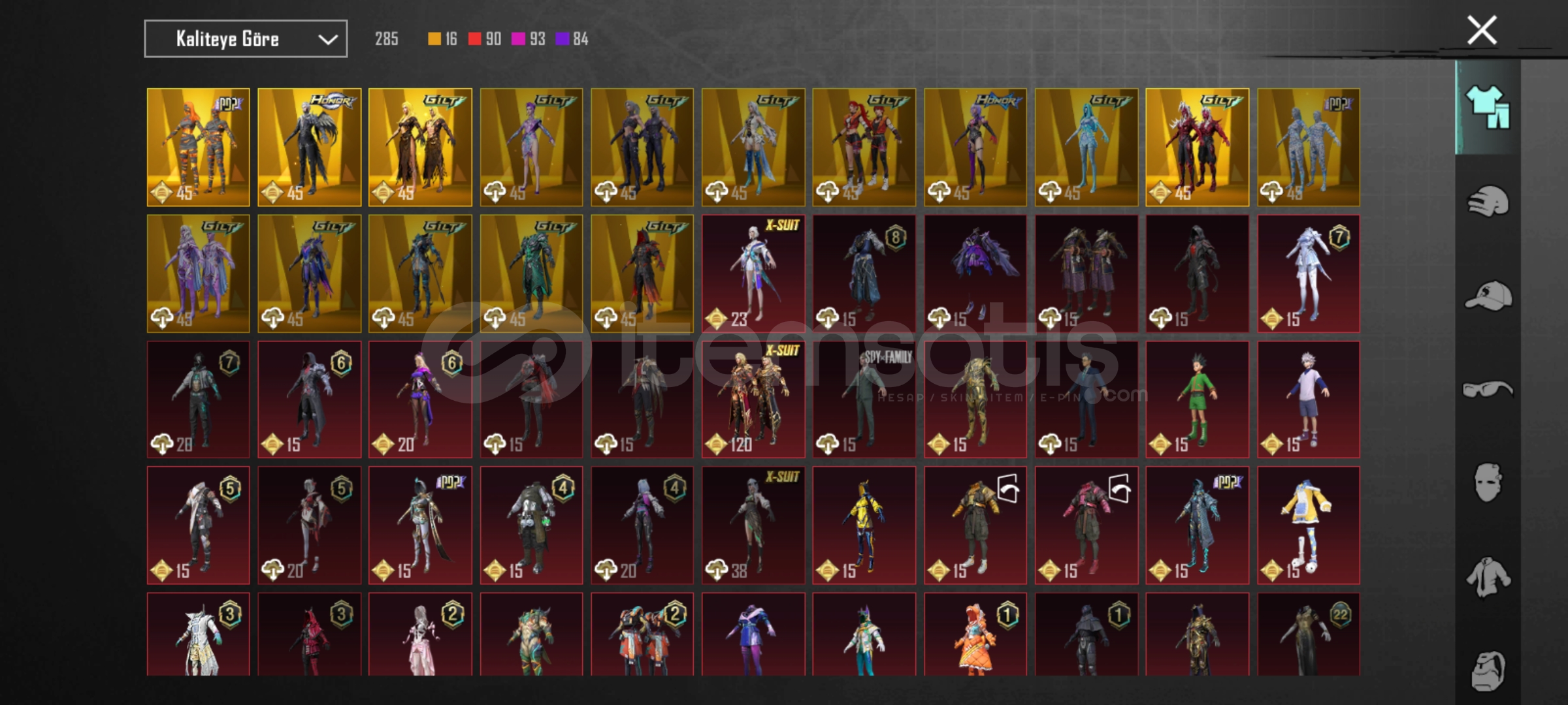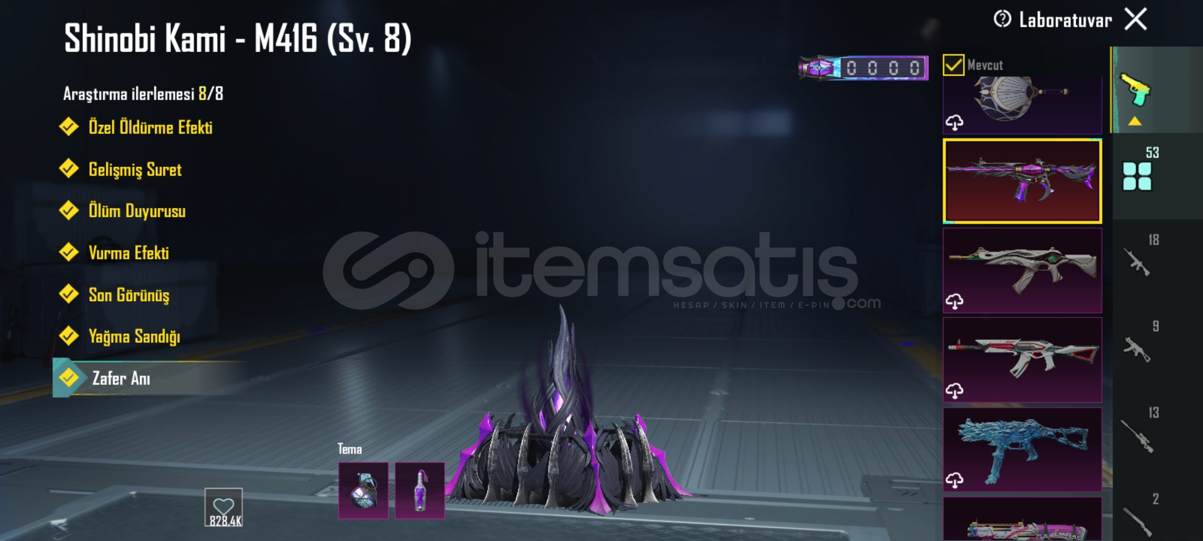 155 destansı 8 maks silah AMR, AVM,BUZ M4, SHANOMI M4, MASKARA M4, M16 aklıma gelenler bunlar 25e yakın ölüm duyurusu açık silahlar nihai setler 1 tane 5 seviye kor alev xsuit gerisi 2 ve 3 seviyede ayrıca yıldız taşı 50 kadar var yıldız parçacığı 500e yakın var isteyen istediğini yükseltir 1 adet hava yardımlı araç ve spor araçlar 10 seviye klanla beraber vereceğim say say bitmez detay için yazınız