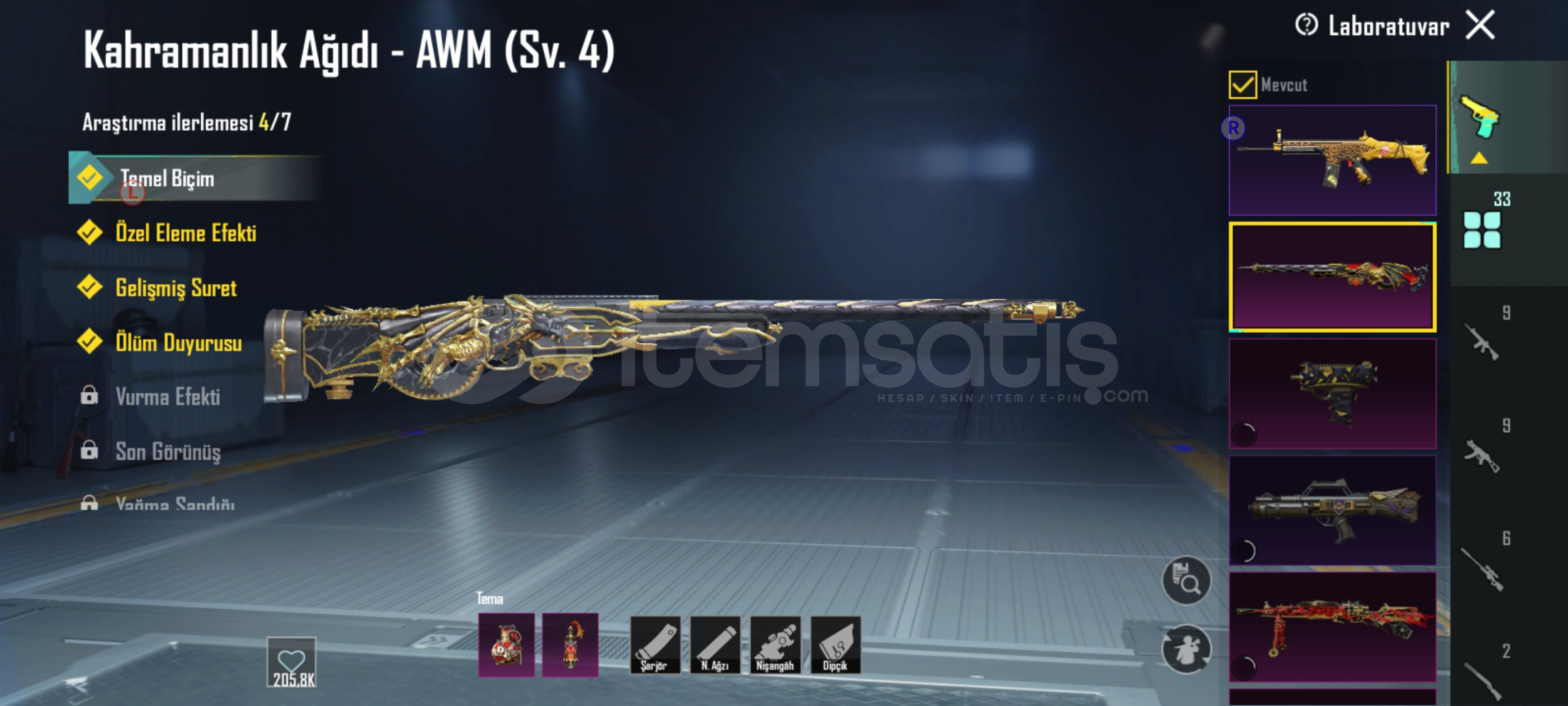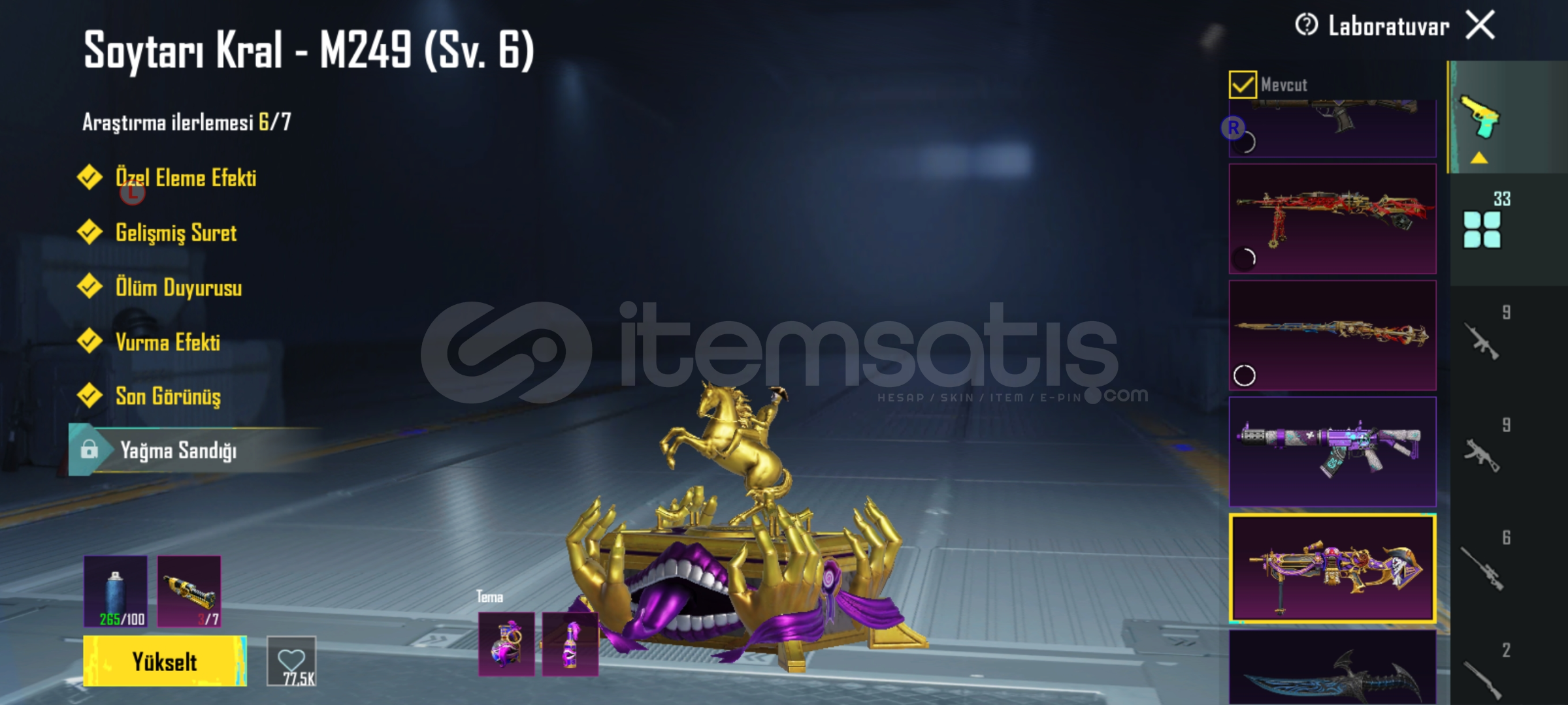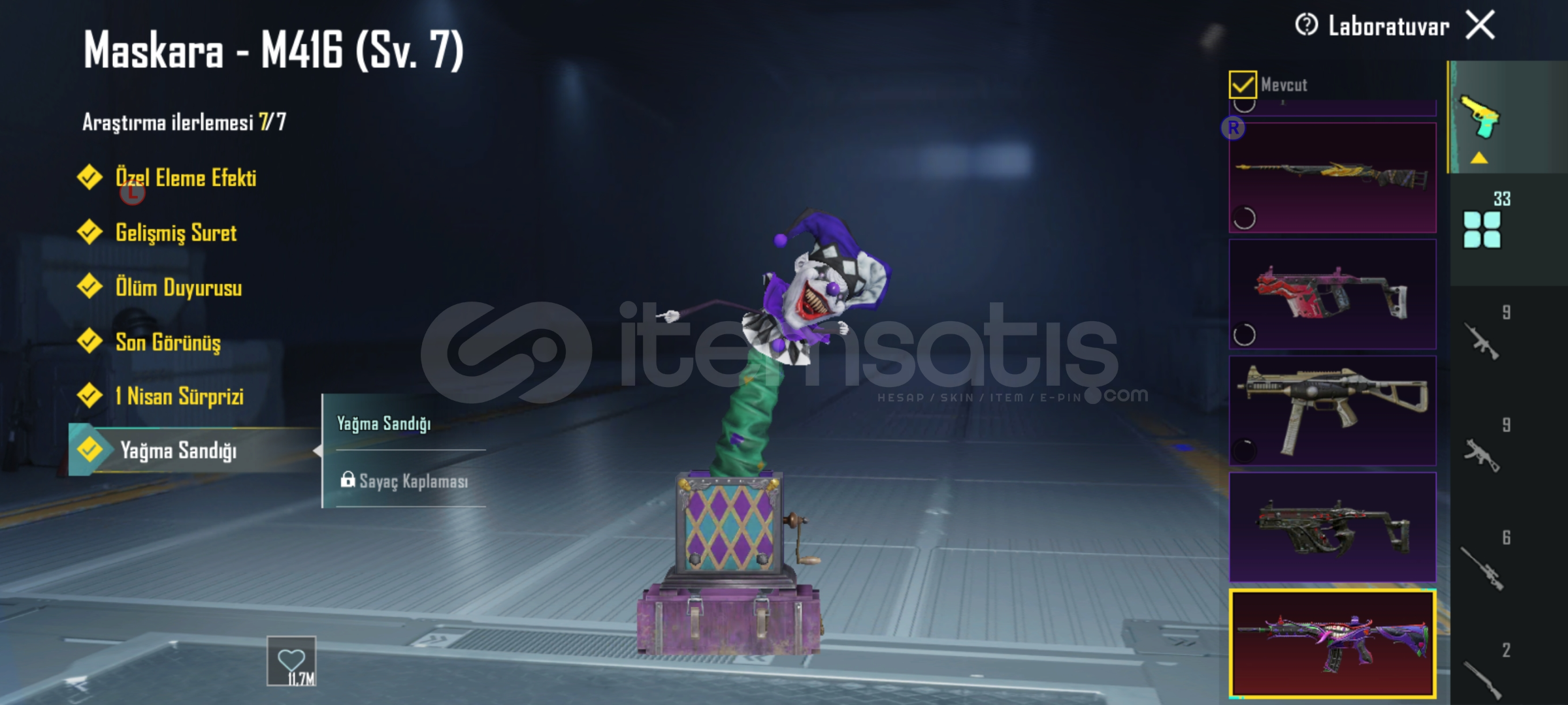 - 28 Adet yükseltilebilir silah Maskara M4 7Sv , Soytarı M249 6 SV, kahramanlığın ağıdı AWM 4 , Firavun M24 3 SV , Hiclik tetiği M24 3 SV , Kan paraziti DP 3 SV , AŞK M762 3 SV , Yüksek SES scar 2 Sv + Yıl dönümü ump ve daha niceleri