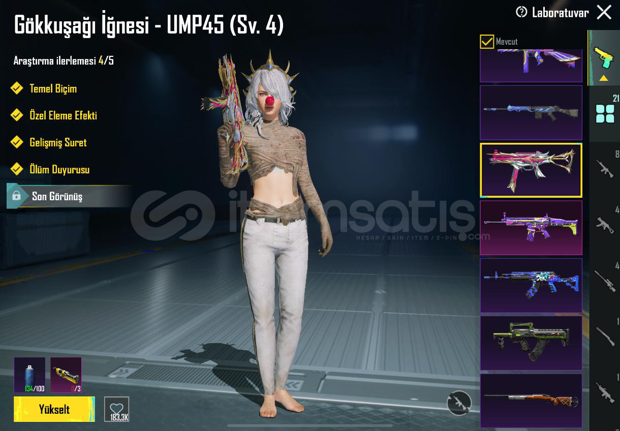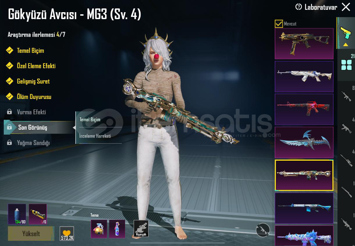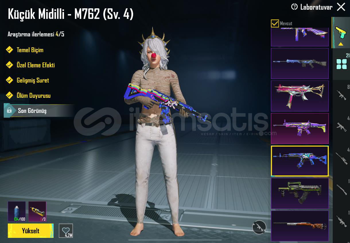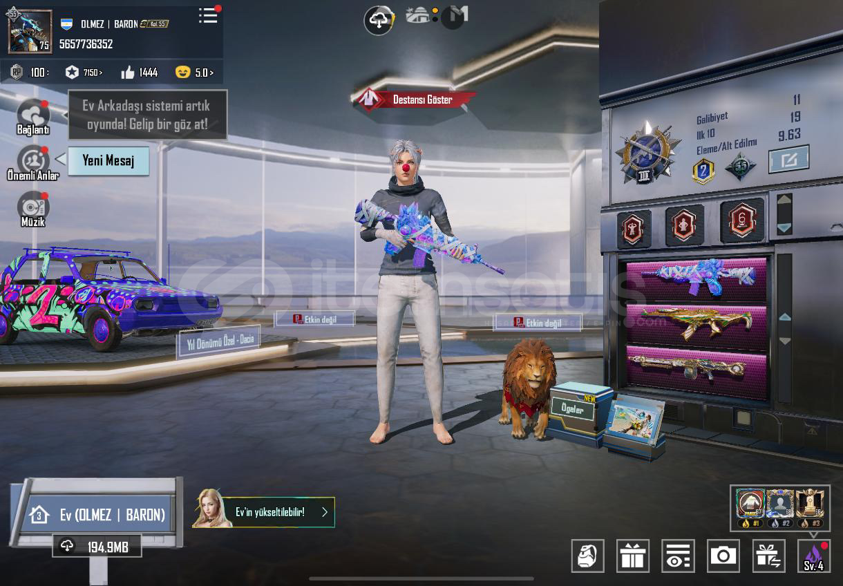 HESAP 55 KOLEKSİYONDURMühürlü Yer Altı : 6 svyKumlar kralığı akm : 4 svyGökyüzü avcısı mg3 : 4 svyYedi Denizler m24: 4 svyKüçük Midilli m7 : 4 svyGökkuşağı iğnesi ump45 : 4 svyGece gadyörü pp19 : maxTundra şövalye : maxMama tabancası scar-l: maxBağlar : tel e posta