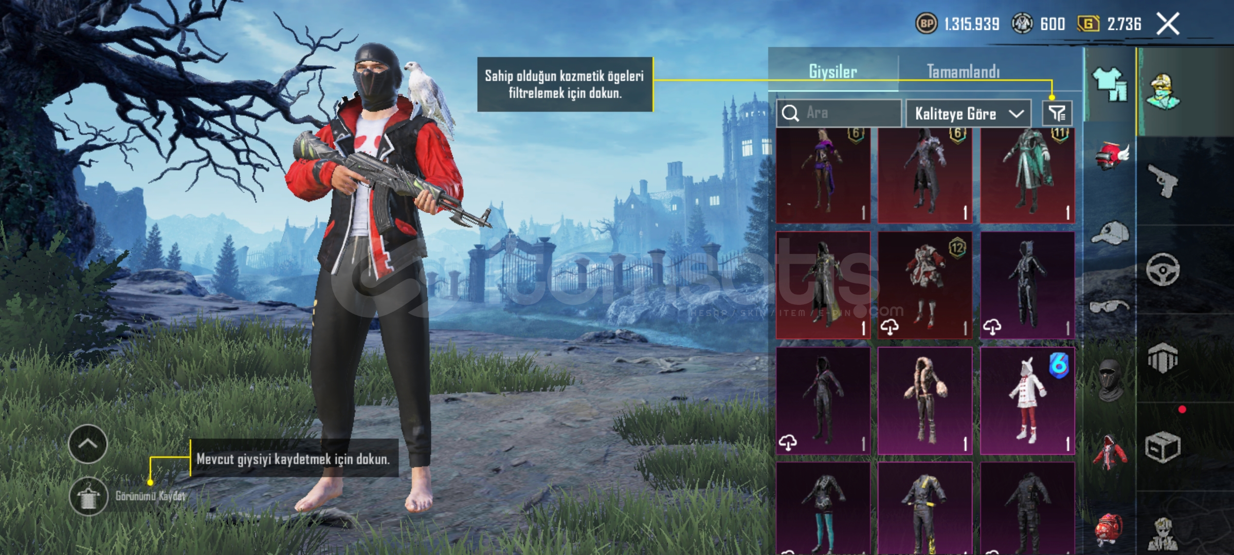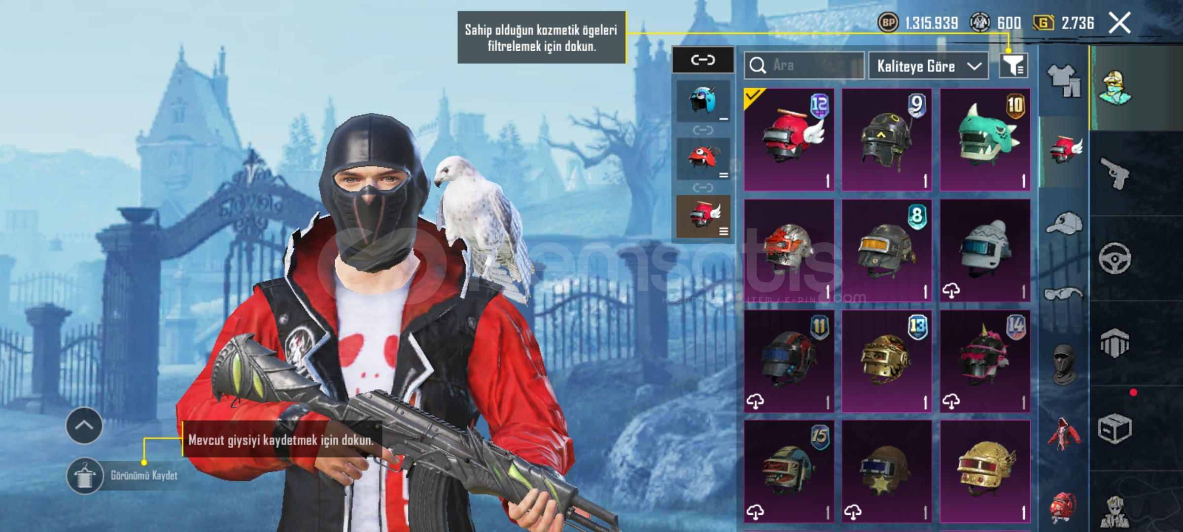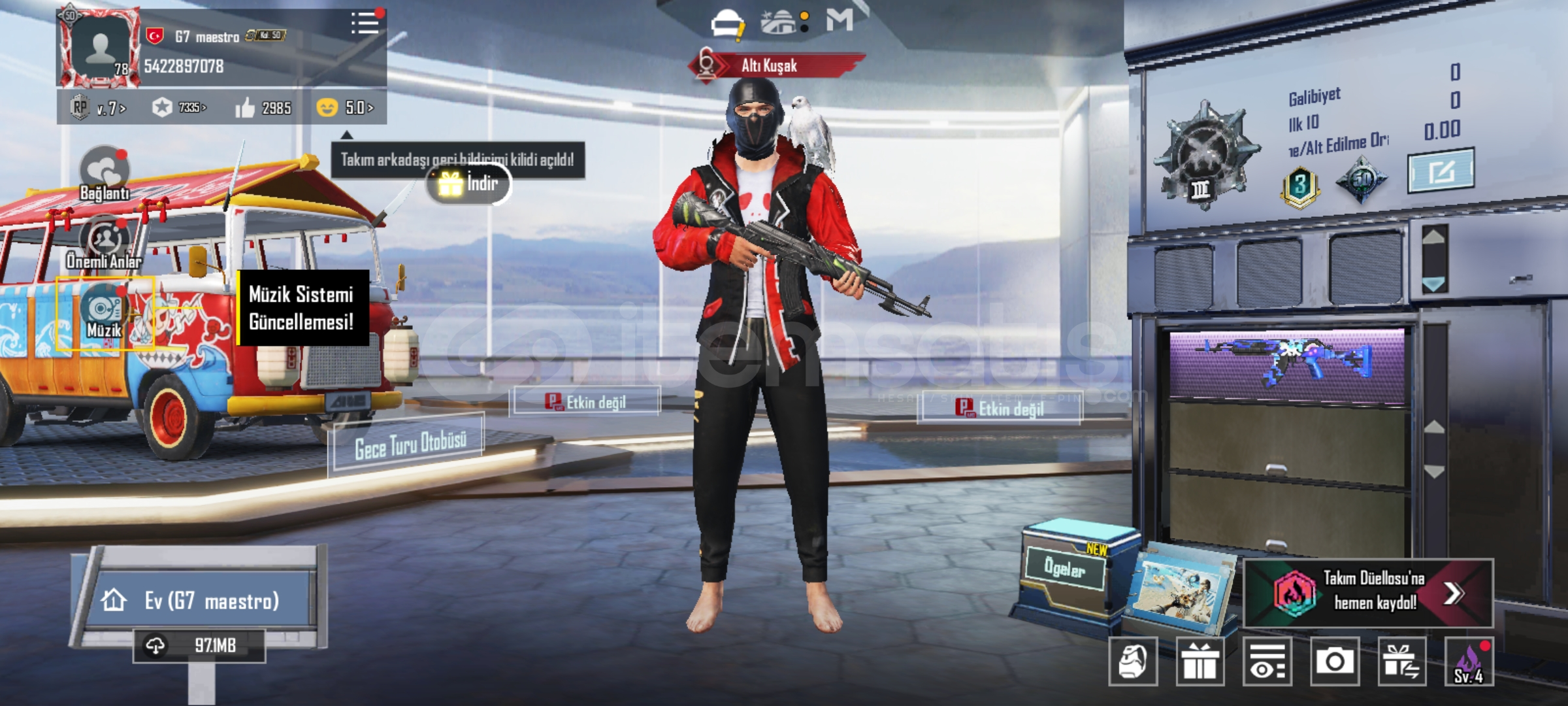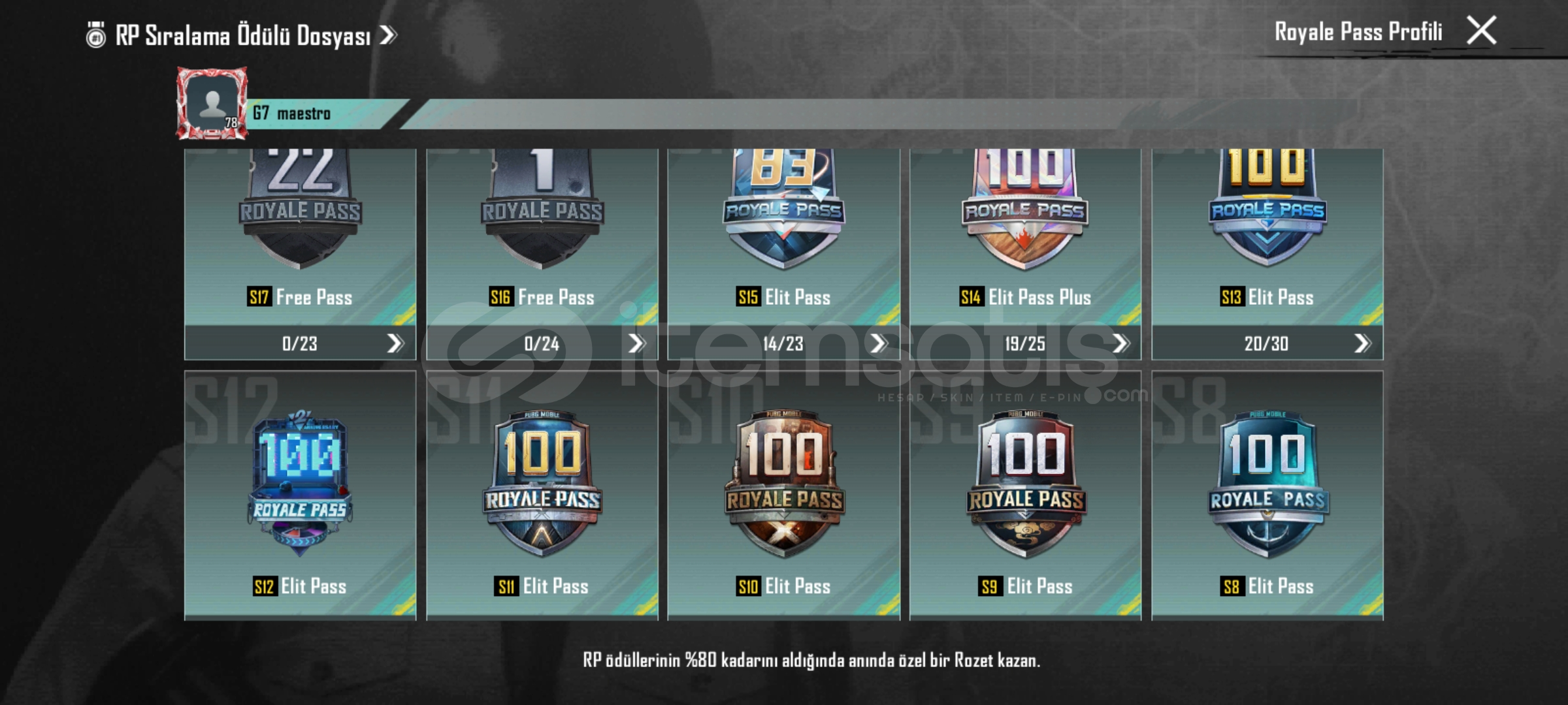 Pubg emek hesabıdır eski sezon itemleri vardır (emoji vs) her silahda desen vardır tüm arabarlarda desen vardır 35e yakın destansı 6 tane yükseltilebilir silah vardir