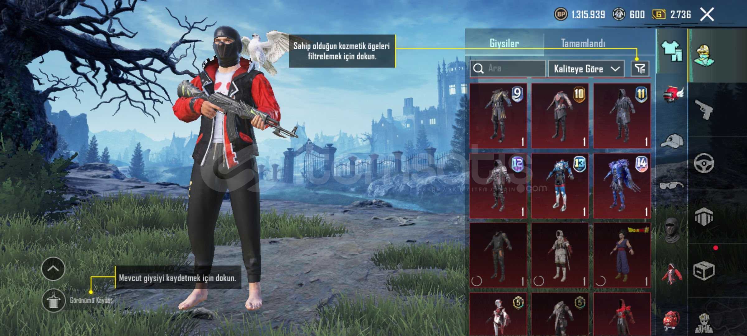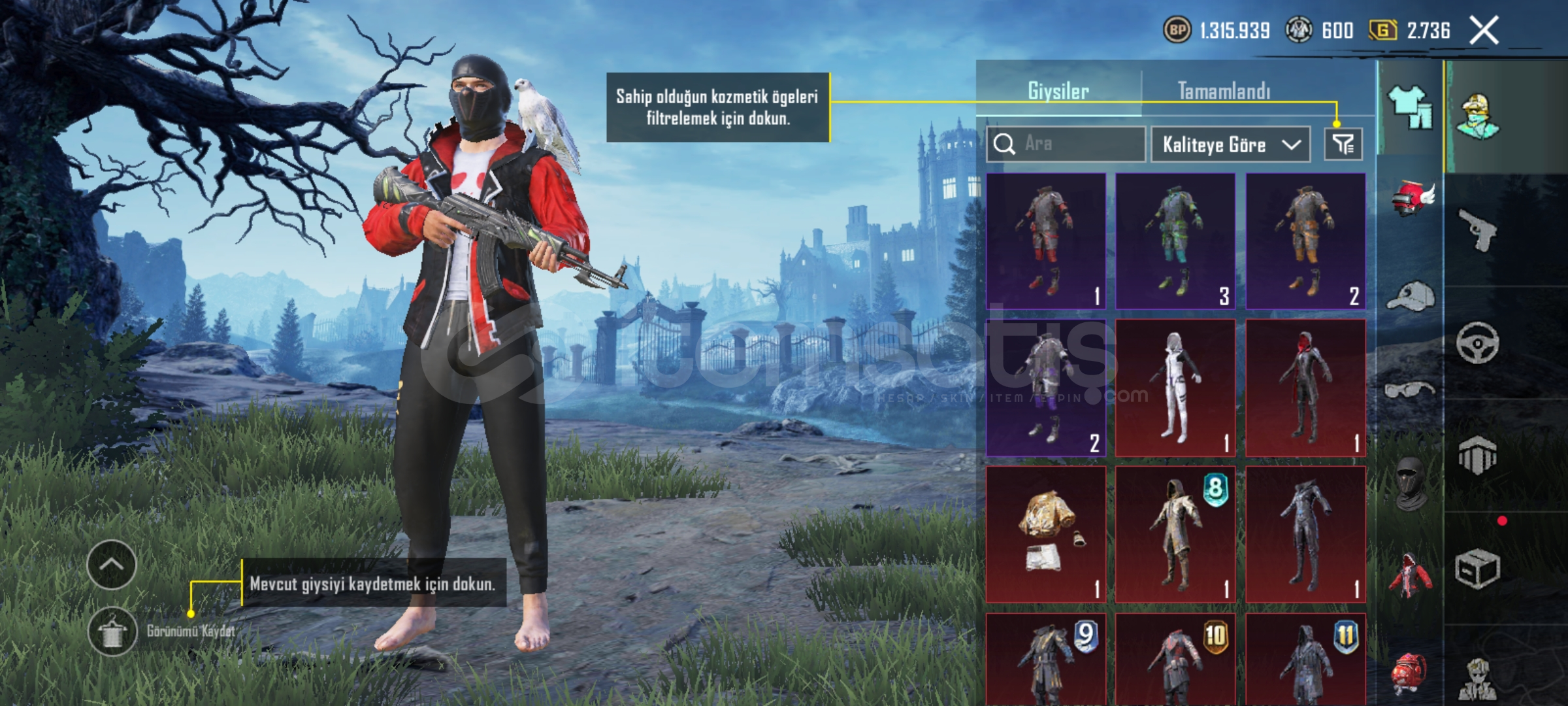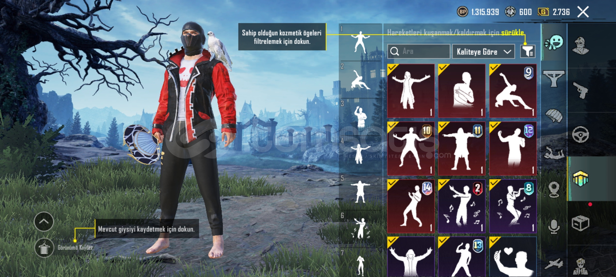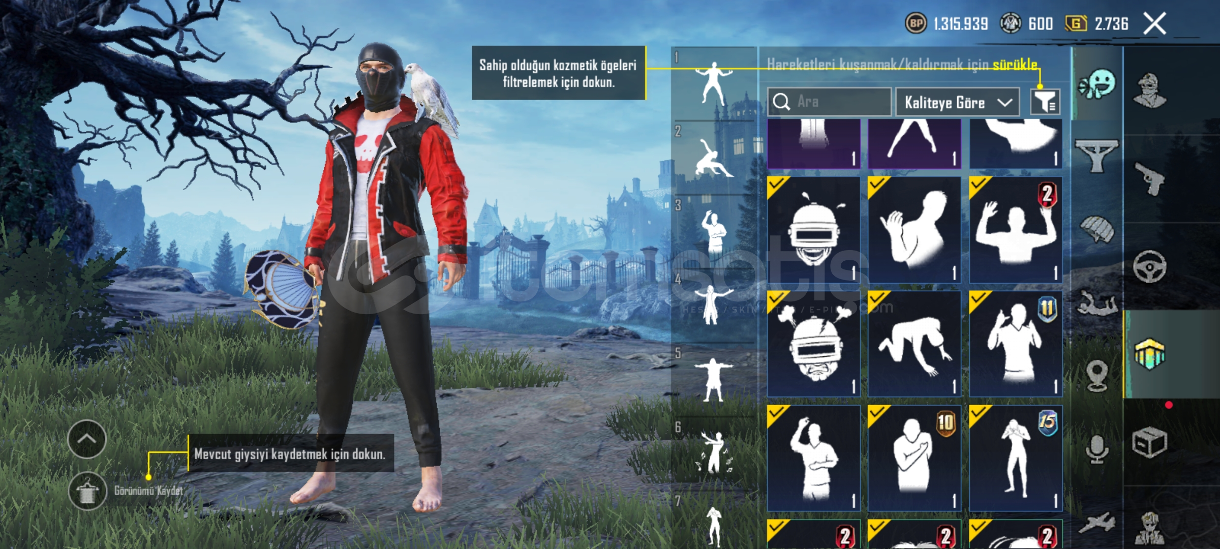 Pubg emek hesabıdır eski sezon itemleri vardır (emoji vs) her silahda desen vardır tüm arabarlarda desen vardır 35e yakın destansı 6 tane yükseltilebilir silah vardir