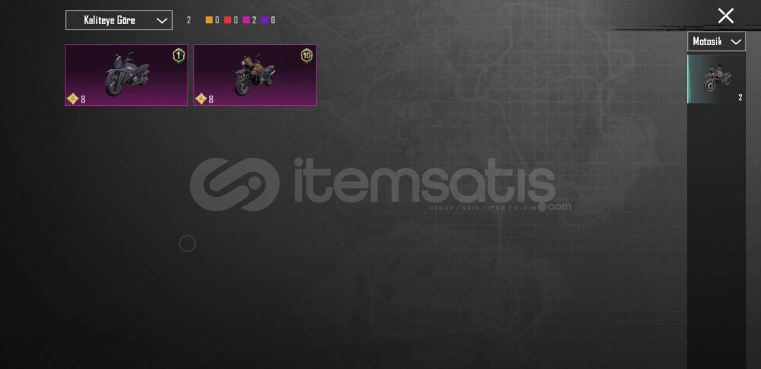 Hesapta 2 tane karakter vardır Yükseltilir sikah bıcak ve Kılınç var arabada uaz yükseltilir 2 tane efsane motor skini güzel emojiler var deli bi hesap başlangıç hesabı deil daha iyisi