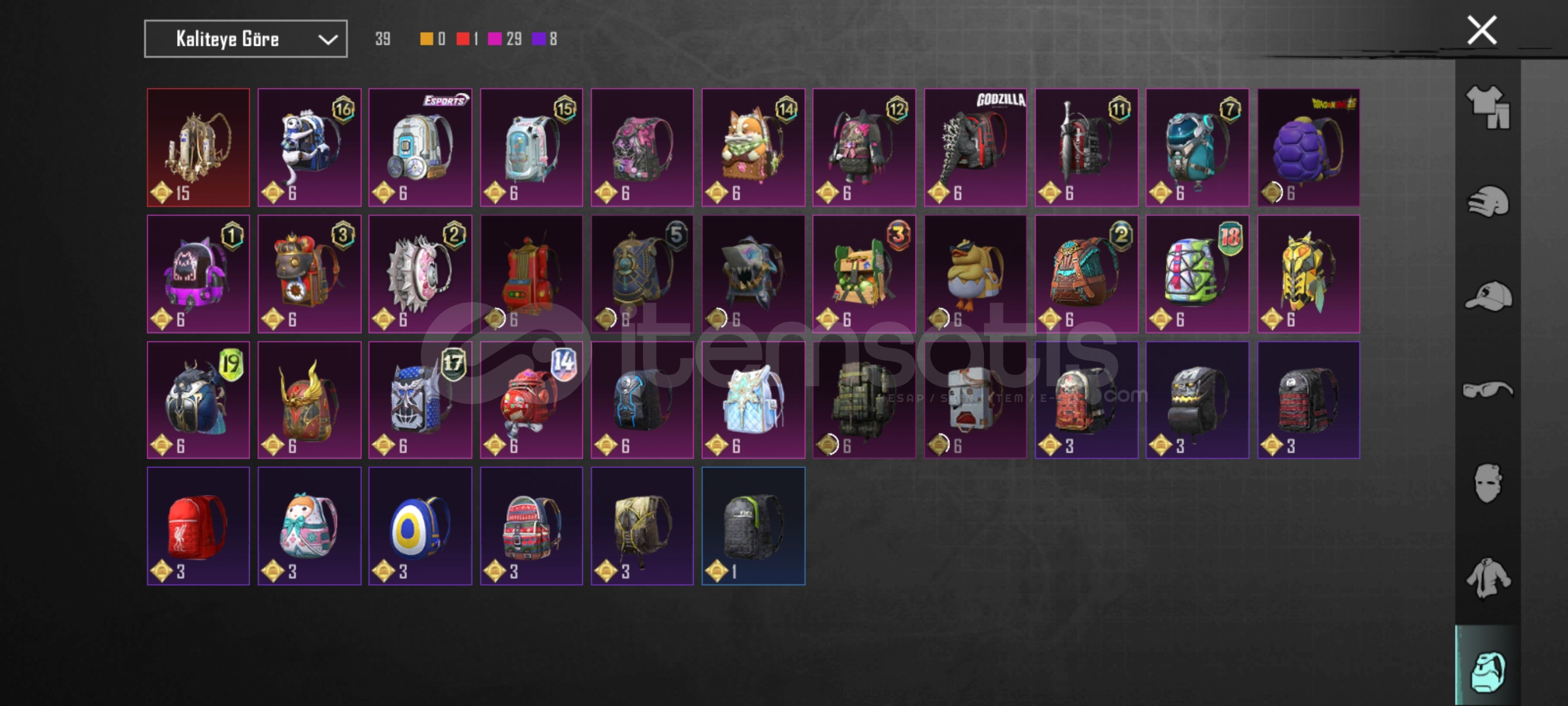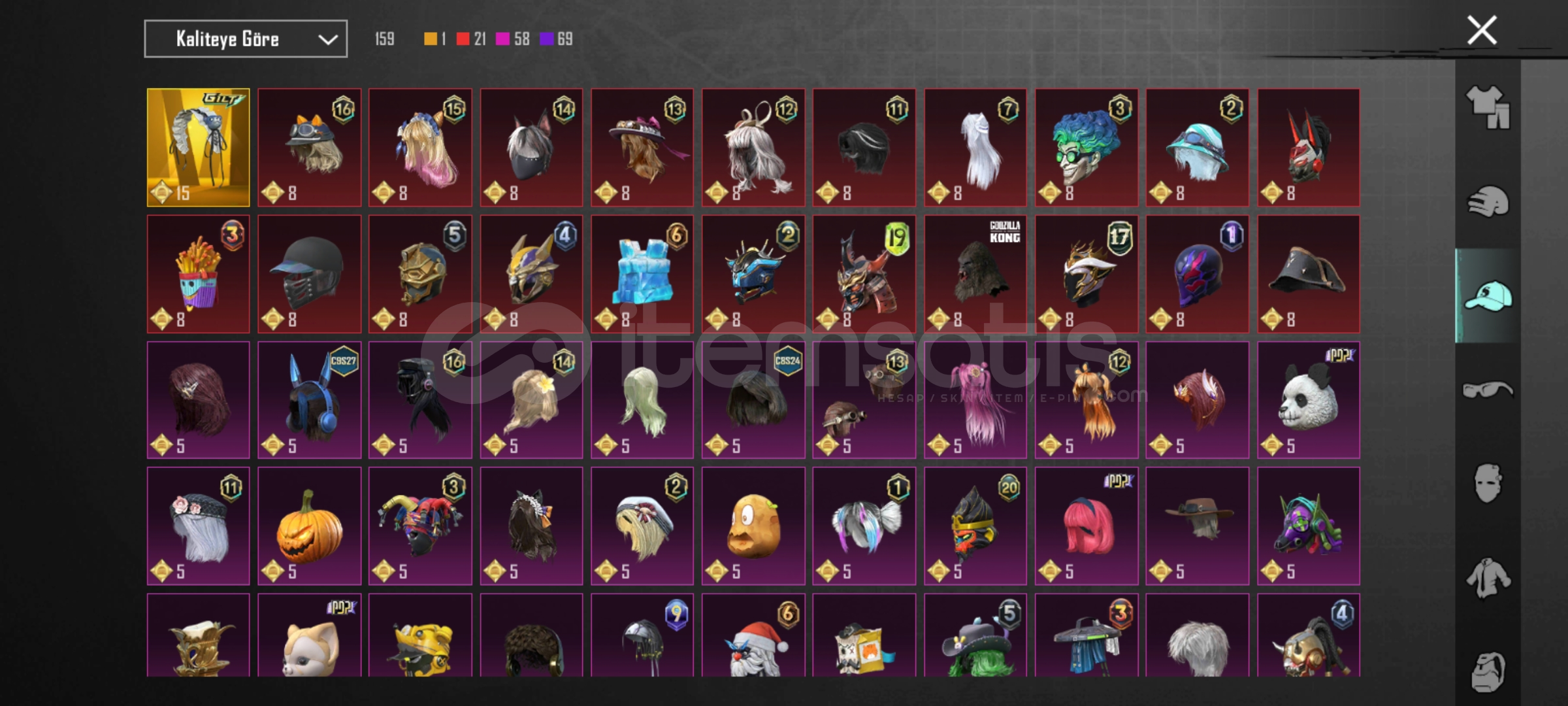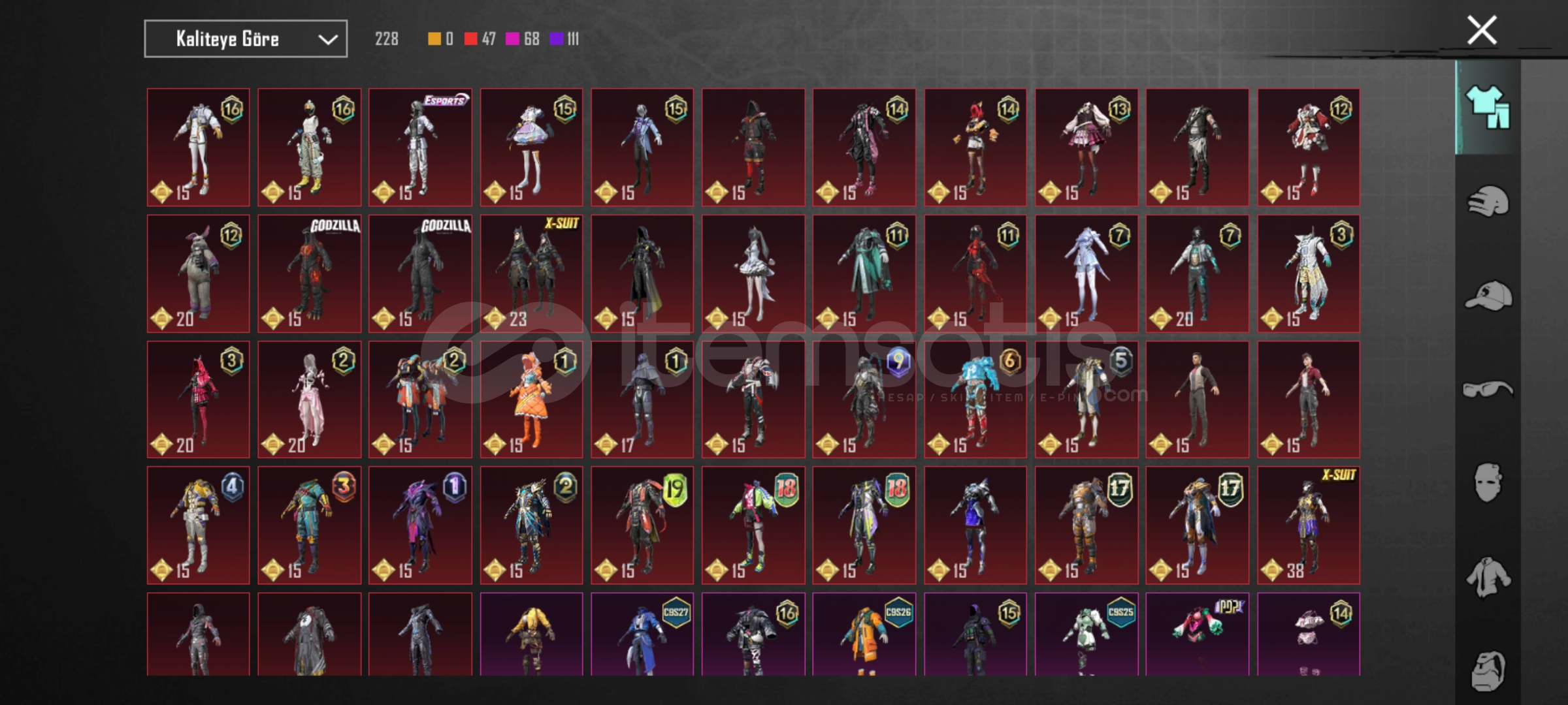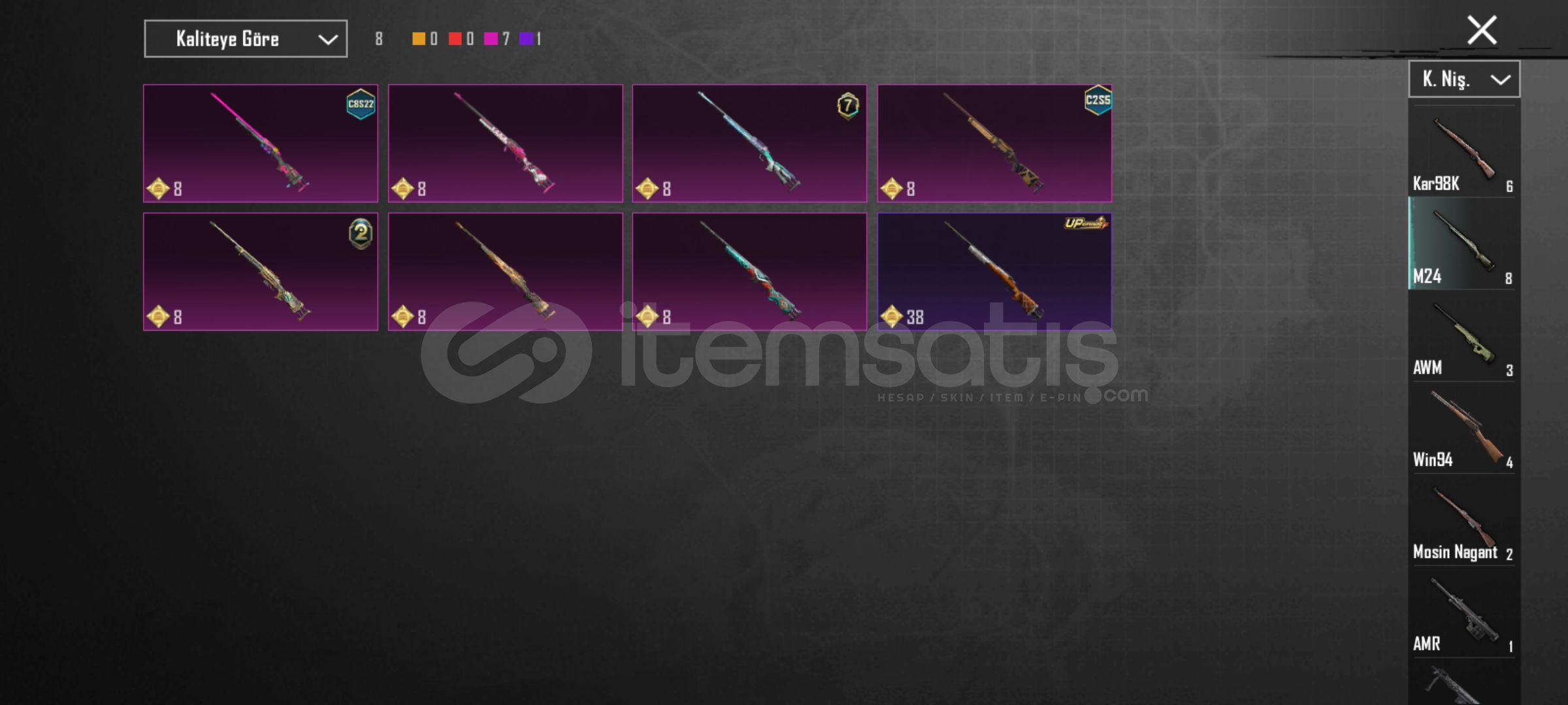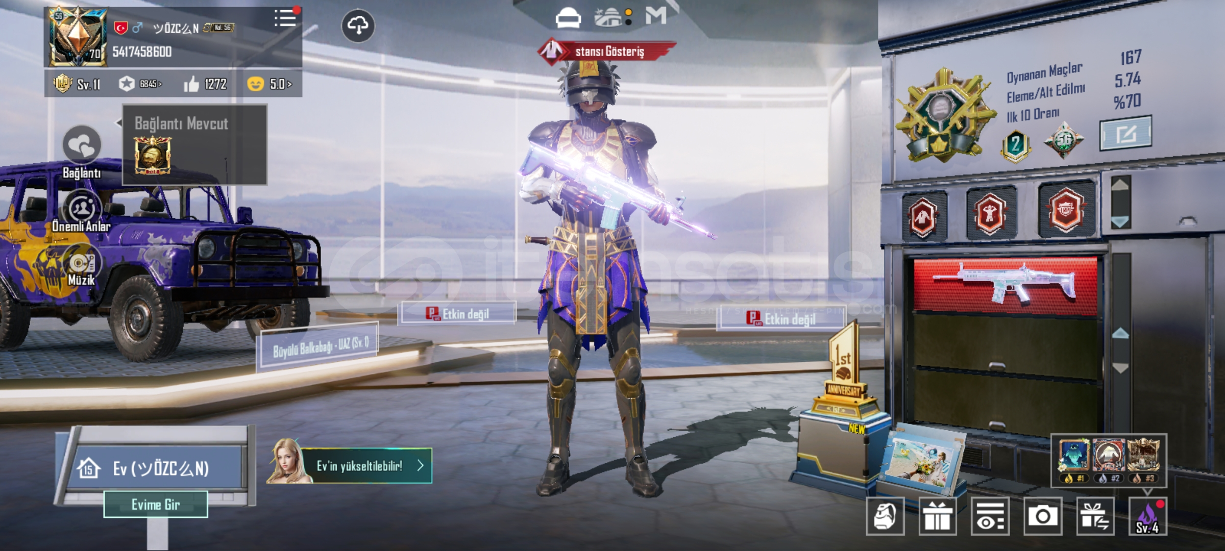 Hesapta 715 adet uğurlu para 75 adet destansı 17 yükseltilebilir silah 3 mataryel 4 adet destansı amblem var