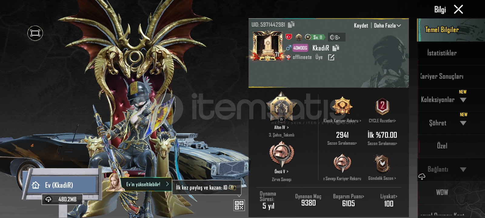 Zırh X'li 6 Yükseltilebilir Olan PUBG Hesabı