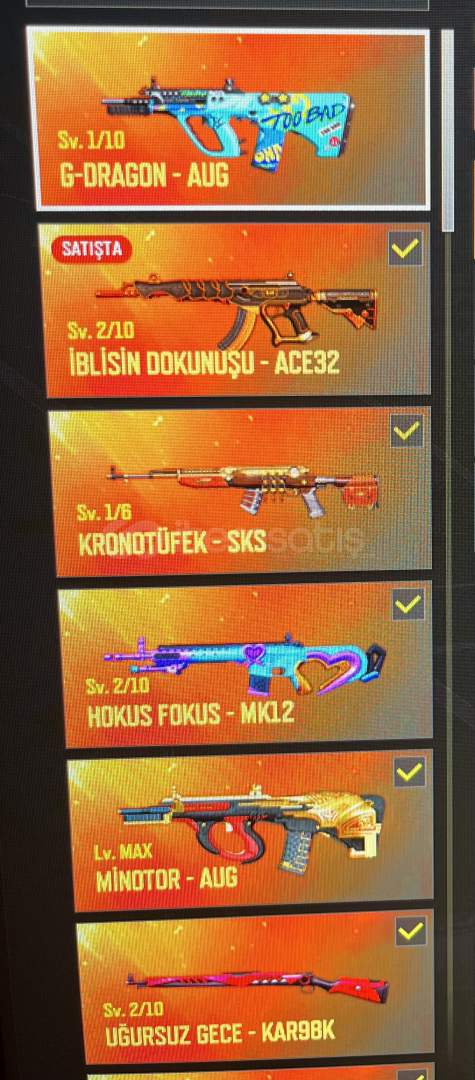 11 Adet yükseltilebilir silah, hanna karakter, üstü açılabilir araba ve fazlası olan bir hesap.