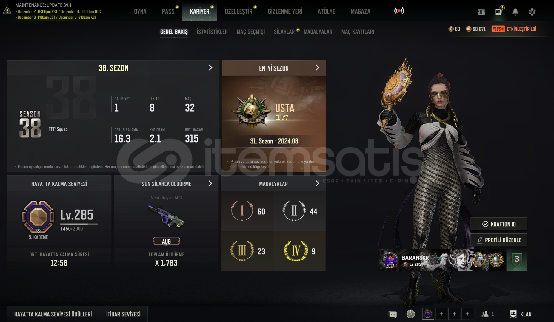 Merhabalar hesabımın ilk sahibiyim hiç ban yememiş vac kısıtlaması vs yoktur. steamde bugüne kadar 4115 dolar para harcadım bunun 3500 doları pubg hesabına gitmiştir steam geçmişten bakabilirsiniz. görsel olarak çoğu şeyi koyamadım ama hesapta her şey var gelirseniz hesabı yanınızda açarım incelersiniz. hesabımı 31. sezonda derecelide avrupa 7.si yapt...