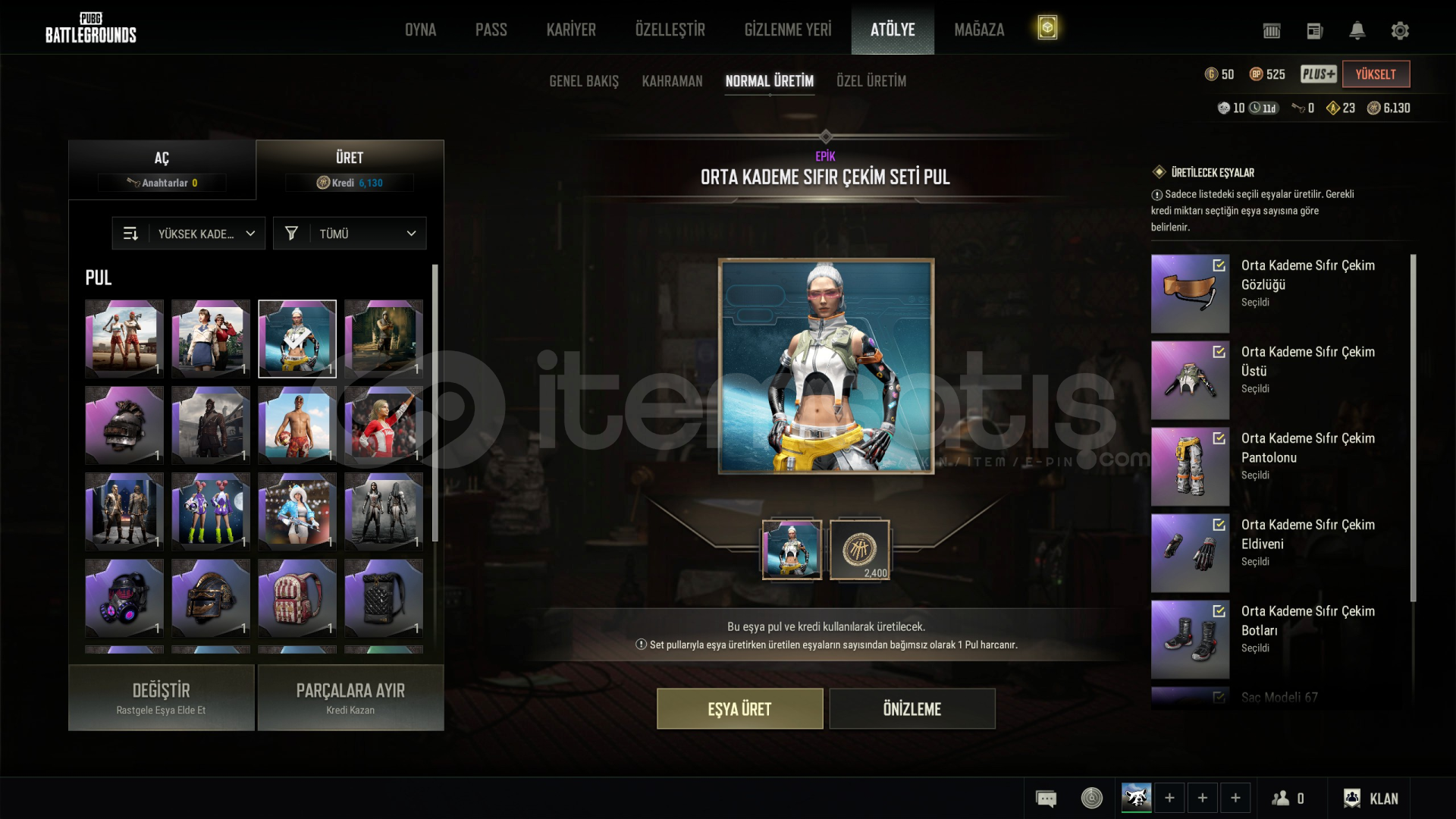 temiz hesap awm geliştirilebilir skin ve 3 şematik var giyilebilir item atölyede keyfinize göre üretin bolca var silah skinleri görsellerde ekli