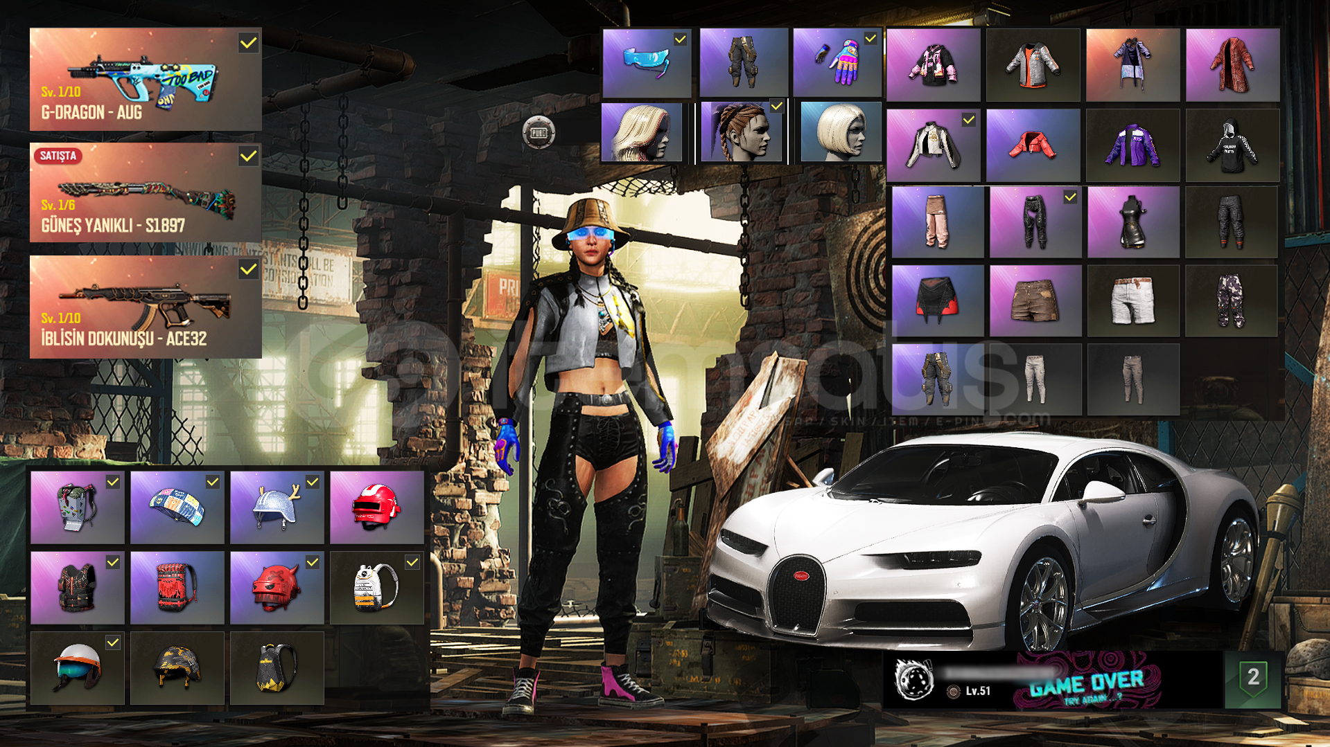 Selamlar, hesapta PLUS YOK!nakit acil nakit fiyat3 adet geliştirilebilir silah mevcut, G-Dragon Aug, Güneş Yanıklı S1897, İblisin Dokunuşu Ace hepsi bir seviyedir.Aixleft Eldiven ve gözlük mevcut, hesapta olanları görsellere tek tek ekledim detaylı bakabilirsiniz.TR steam değildir bilginiz olsun.İlk Mail mevcut