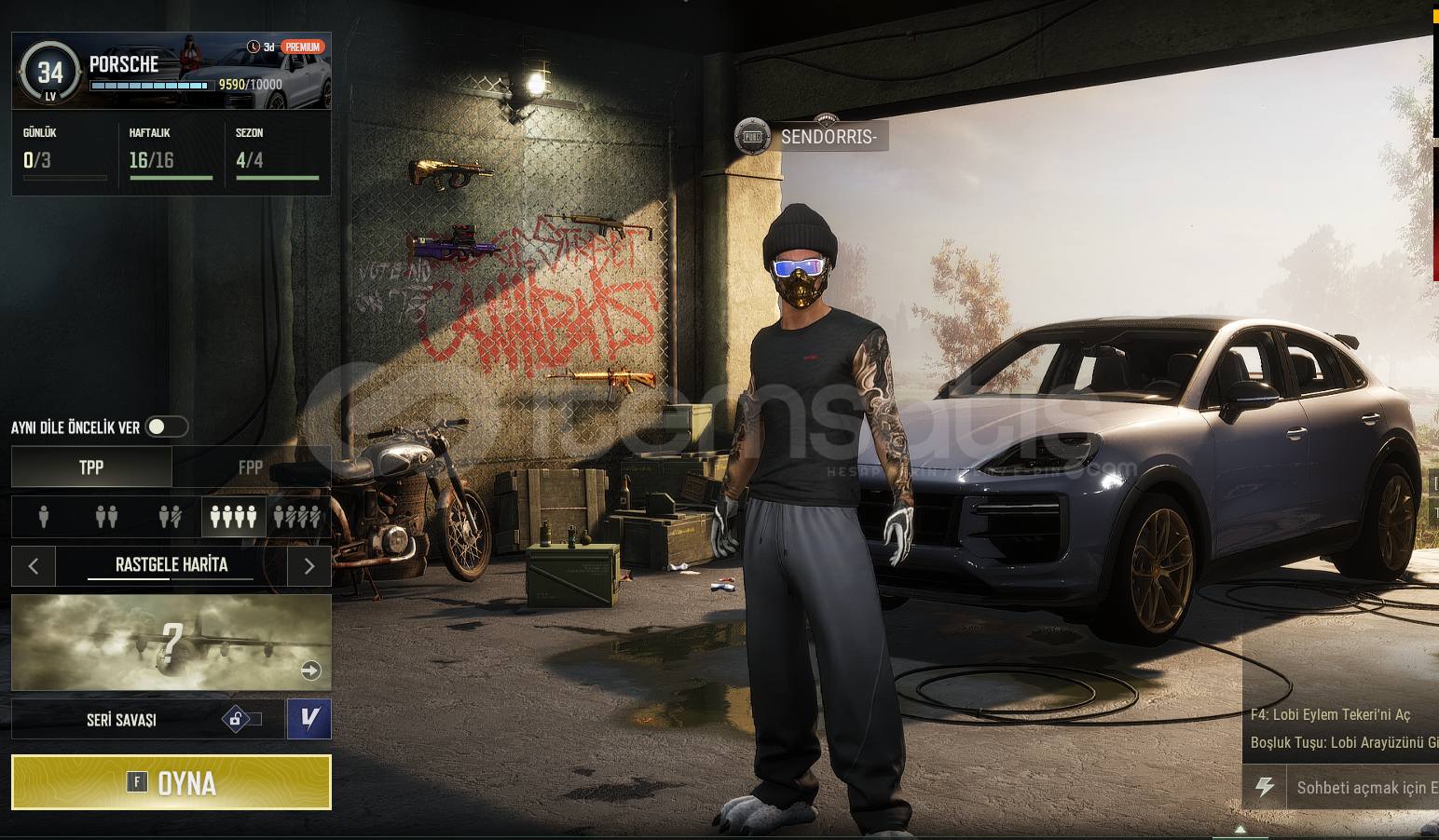 Porsche Cayenne üretildiPorsche Panamera üretimde bekliyorPorsche Cayenne'nin renk kroması üretimde bekliyorMinator AUG 2. SeviyeBol bol kıyafet saç dans ve araç kaplamaları mevcutepic games hesabıdırHESABA YAKLAŞIK 70K YATIRILMIŞTIR. PAZARLIK YAPMAYINIZ