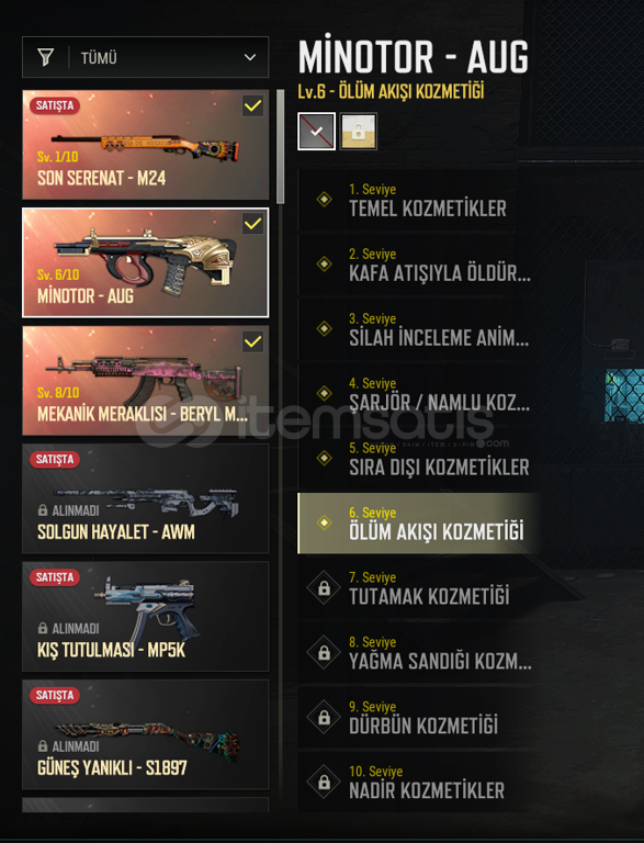 GELİŞTİRİLEBİLİR MİNATOR AUG 6. SEVİYE , MEKANİK MERAKLISI BERYL 8. SEVİYE, SON SERENAT M24 1. SEVİYE