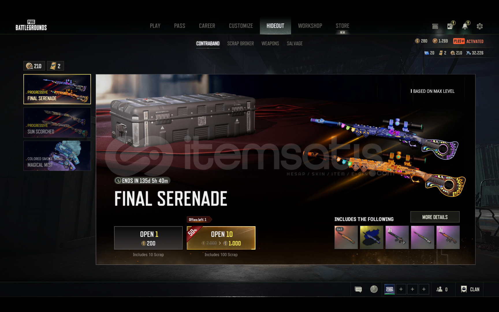 Hesapta Pgi sargısı ,Shroud maskesi, Pgi Ahq Esports ,Pgi Honey Esports hoodileri, Neoticach M4 Chocotaco Beryl gibi baya bir nadir skinler vardır hepsini buraya yazamıyorum .20 Şematik 30k polimer bulunmaktadır.Cs 2 prime vardır. Hesap bölgesi İspanyadır.Hesapta herhangi bir vac ban veya ban bulunmamaktadır tertemiz hesap.Hesapta değerli bulduğum bazi skinlere burdan bakabilirsiniz : https://imgur.com/a/ukZXtvG