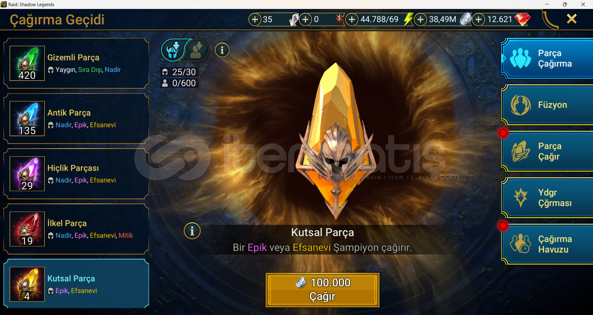 Hesaplar sizin mail adresinize bağlanacaktır. Bu sebeple sipariş verdikten sonra bana oyuna bağlı olmayan bir mail adresi vermeniz gerekiyor.🔴 Mitik Taş: 19🟠 Sarı Taş: 4🟣 Hiçlik Taşı: 29🔵 Mavi Taş: 135💎 Cevher: 12.596 (+150 Mavi daha alınabilir)⚡️ Enerji: 44788🪙 Gümüş: 38495430🔑 CB Anahtarı: 62🍺 Geliştirme İçkisi: 857...