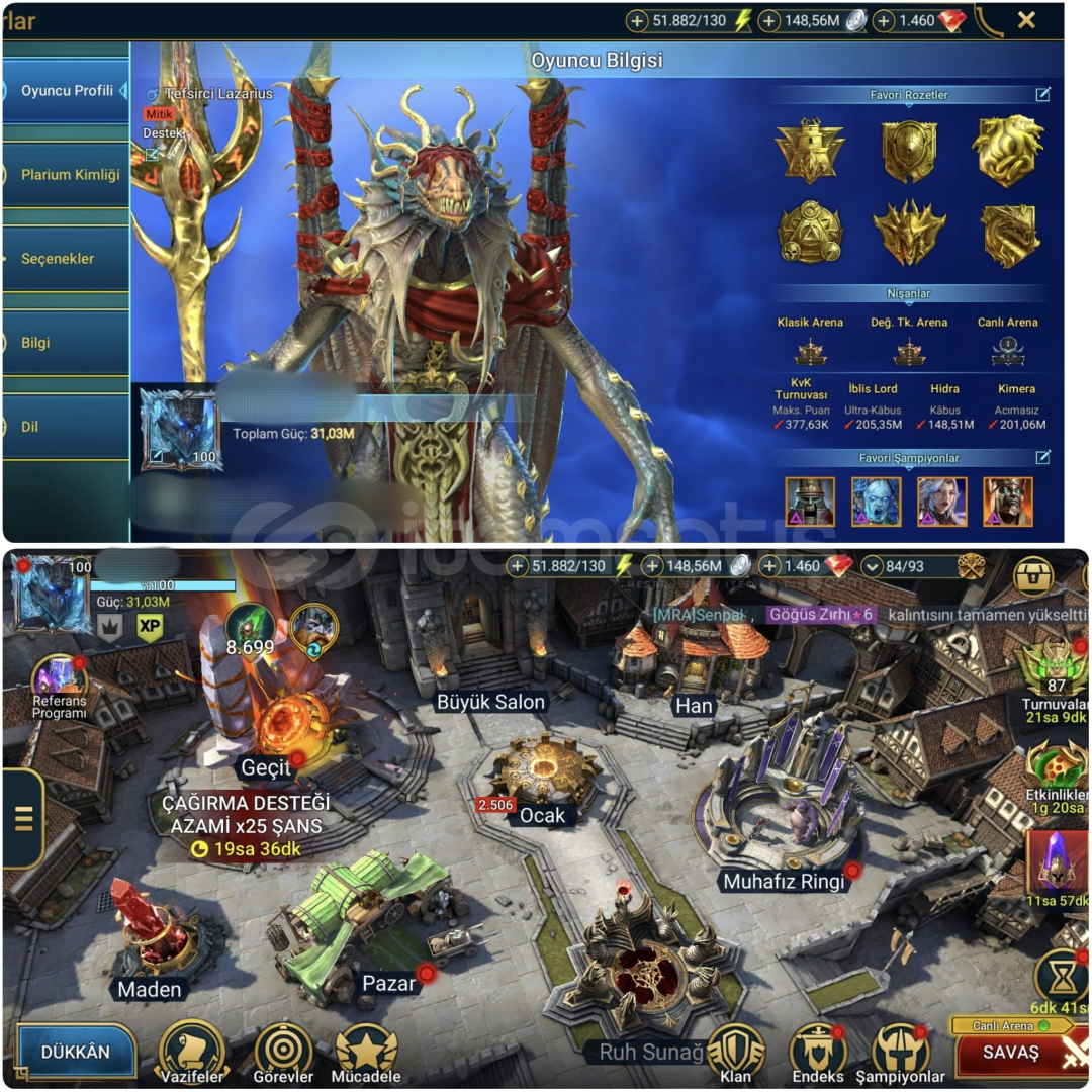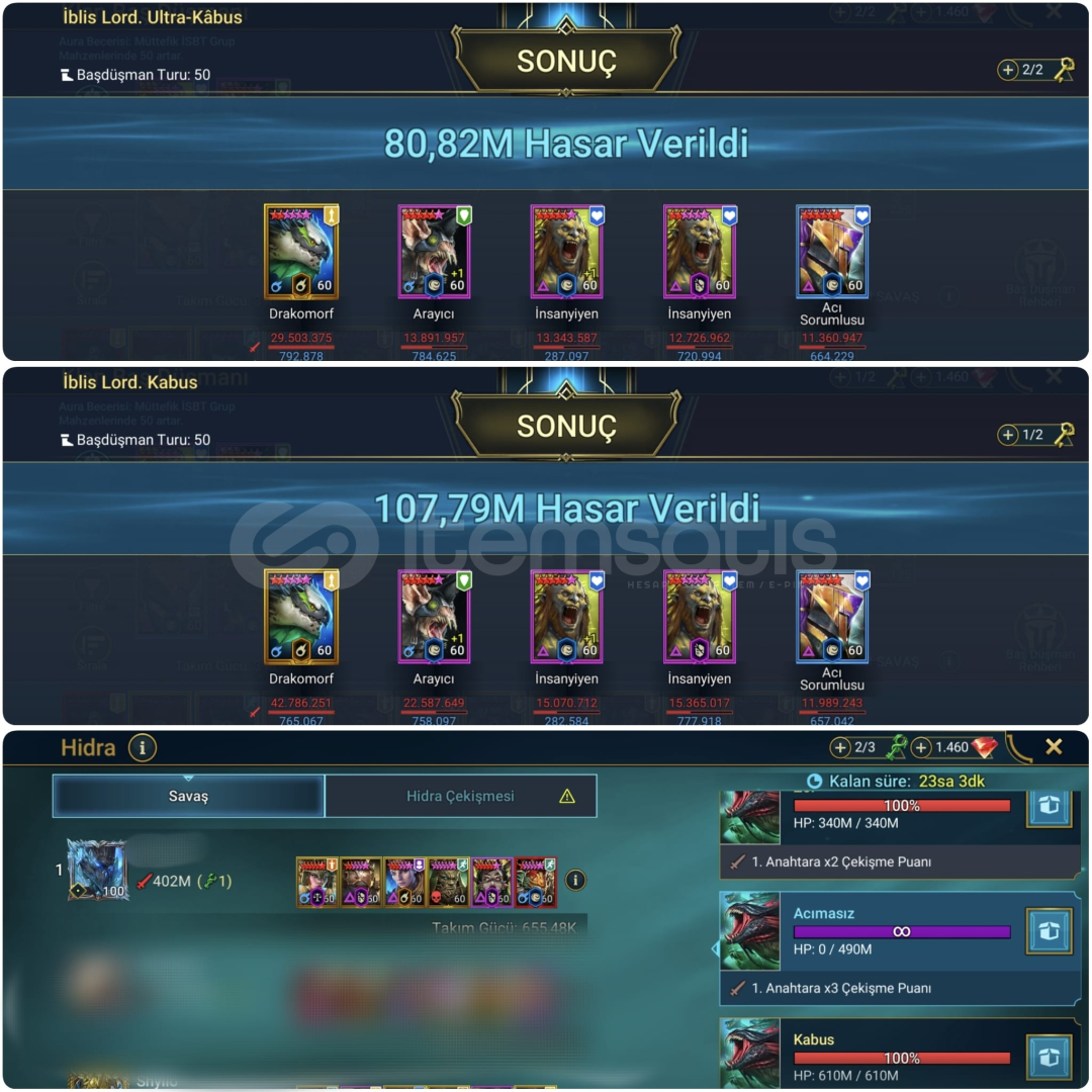 3 mitik 329 Efsane 31M Güç Büyük Hesap