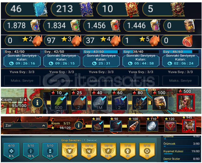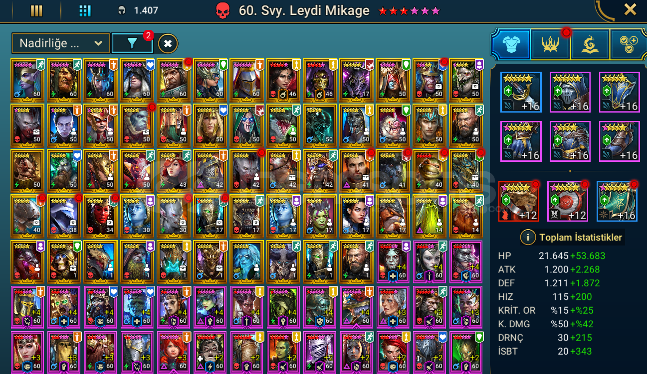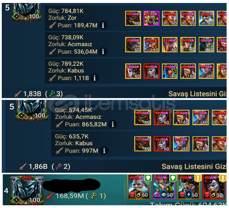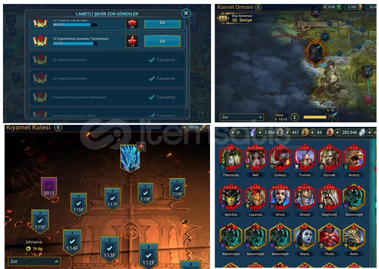 Tüm detaylar resimlerde eklidir. 6400 taş 4 mitik ve 3 gnut vardır diğer heroları inceleyin (Acrizia, thor, odin vs.) 149+ efsoHidra ve Kimera Takımlarını yeni kurdum. Şuan otomatikte ikisindede 1.8 B hasar veriyor. (Artacak)Lanetli şehir zorda %85 bitiriyor amius rahat kesiyor. ( Karnage mitiği alır)Kasvet ormanı zoru rahat bitirir. (Anaxia mitiği alır) şuan 19 parça var. Parçalardan efso maud da gelec...